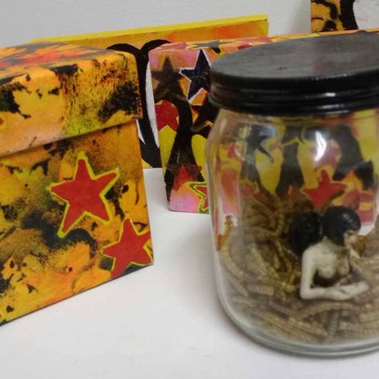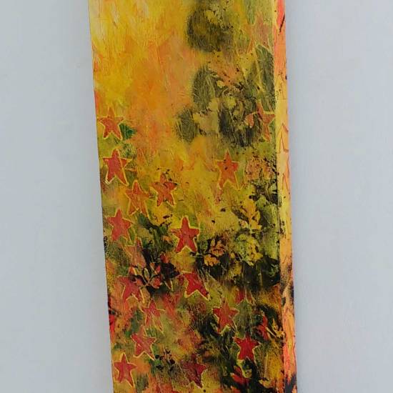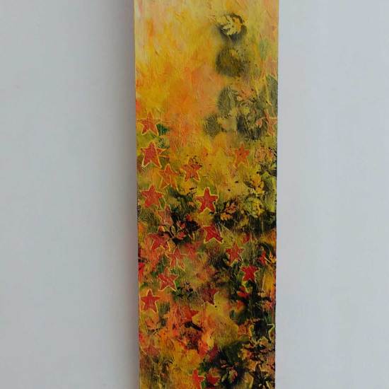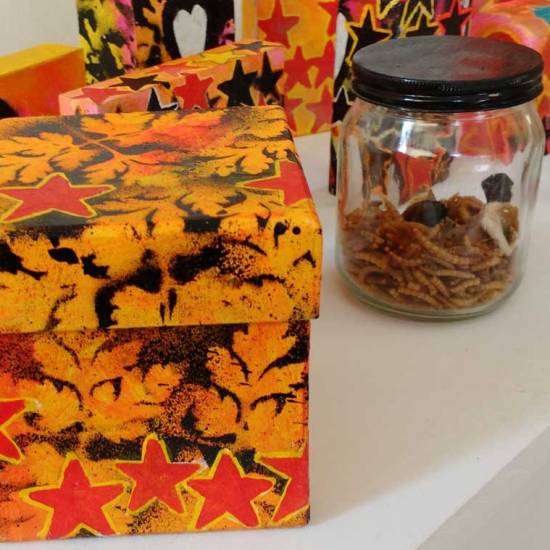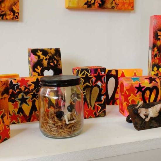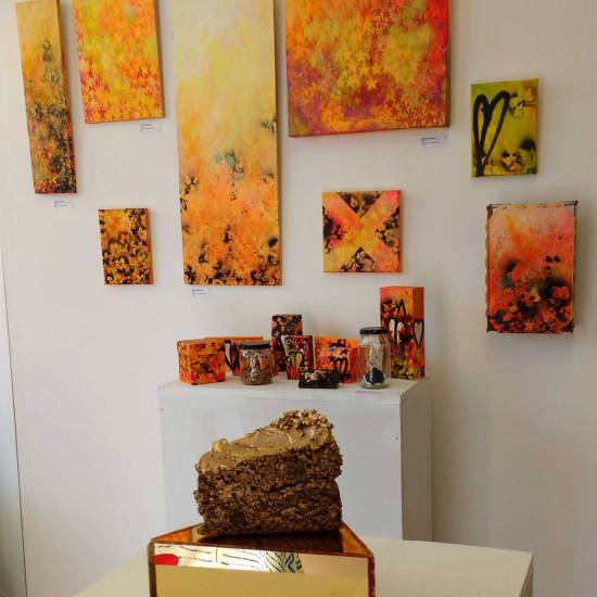 Hang on, stop, today isn’t the day to go into it all, the second Columbia Road takeover show is happening right now, a show called I Saw it First, I Want it Worse (yes that show title did come from a Seven Year Bitch lyric), the current show along with the first one and the art and the other artists involved is all documented on the Cultivate pages and the Organ pages. here’s a taste or two of my art and the fresh stargrowth and the leaves and the the new layers and the notions of the Cheap Art Manifesto and the daily paintings and the beautiful old till and such – the gallery was once a greengrocers shop called Sylvester’s, back in the 60’s, I’m having lots of interesting conversations with people who lived in the area back then who can remember it, that might be something to revisit in the space later in the year… For now then, a taste of what I’ve been doing with my art in the space so far, there’s more to come before it all ends on October 29th, I do love painting, I much prefer my painting hat… Oh and by the way, just updated the on-line shop again, do please have a look, I’m going to need to buy a new hat before the cold weather kicks in…