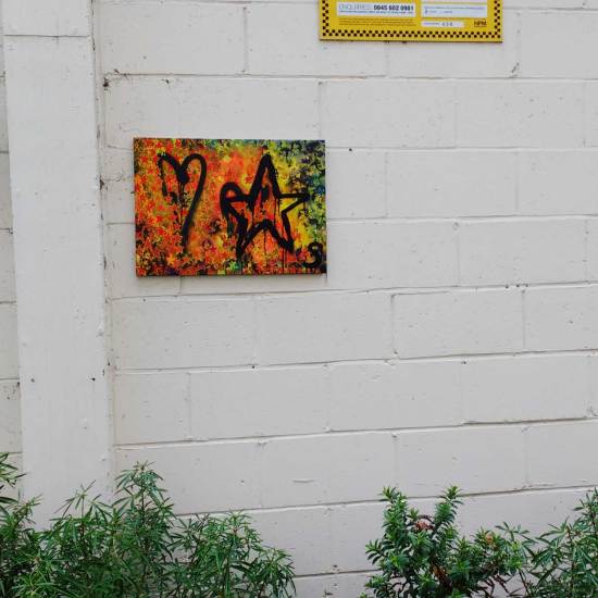 “The Stars Don’t Look The Same As They Did” is a piece that’s been evolving in the studio for a while, layer upon layer of fresh star growth or leaf growth or whatever you wish to see, the piece was concluded today. Acrylic, brushwork, spray paint, gloss varnish on found canvas, (Jan 2019, 60cm x 40cm), The piece was painted on a found canvas print, one of two found a couple of years ago I’ve been painting on this canvas on and off for the last year or so now, mostly while listening to Starz records here in the studio. The piece is now concluded, one of many pieces that are near conclusion here. Not sure when the piece will be exhibited or indeed if it ever will, there’s a lot of work here that will probably never hang on a gallery wall, some of it sells before the right show comes along, and sometimes, by the time the right show comes along there’s new work to show, this one is heading to the Cultivate on-line shop any moment now …