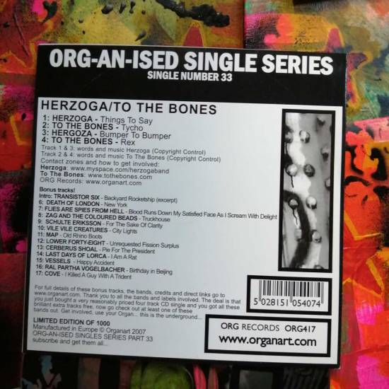 People have been asking about ORG Records recently (we ran a record label for quite a few years back there), people have been asking if there was anything left? If there are any plans for re-issues or new releases? No, not really, there has been a couple of old releases issued as limited editions of 43 in hand painted covers recently but that’s all – actually I see these pieces as paintings that just happen to come with a CD, rather than just a painting on a cover. The ORG Records days is something we get asked quite a bit so for once I’ll attempt to answer properly. ORG Records came to a natural end about ten years ago now, I don’t know how many releases there were in the end, something like 200 albums, singles, vinyl, CDs and such. Most of them have long since sold out and have been deleted, there are no plans to re-issue anything right now, I don’t expect there ever will be (and if I could do it all again I probably wouldn’t, although I reckon most of those releases still stand up, rather proud of most of them). It all came to a natural end with that final Cardiacs single, final in terms of the label rather than the band. There are one or two releases still available via the Cultivate Big Cartel shop or indeed the Organgrinder ebay shop, but no, the label is, like the printed zine and the gigs and the rest of it, old history now, hopefully most of it good history.