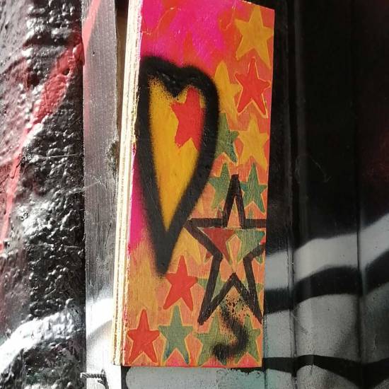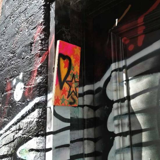 The month-long piece that is the latest #43Leaves piece, September’s #43Leaves piece, the latest in a series of pieces of work in 43 parts, 43 paintings on found recycled material. The piece is happening now. 43 more paintings on found recycled material picked up off the street/ Material picked up, cleaned up, painted on and then left hanging back out there on the the streets for people to just take. The piece is happening now, here’s a fractured collection of photos of the first twenty. The carefully placed”dropping” goes on this week in both here in London and at the Margate Art Weekend and next Saturday’s Art Car Boor Fair at Dreamland. Watch this space, more coming up, art does not rest, art does not take breaks…
