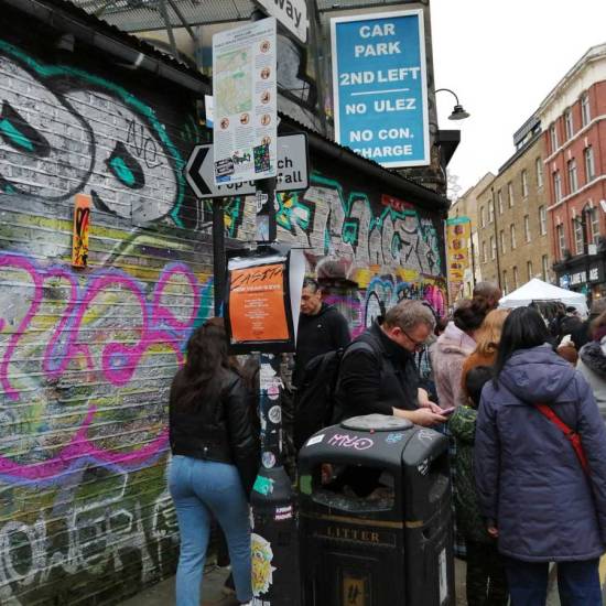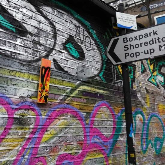 The first four #43Leaves pieces were painted and then left hanging in and around Brick Lane, East London yesterday (January 5th), never actually “dropped”, always carefully placed, walls carefully selected, note on the back inviting people to “please take”, I imagine this practice will go on throughout the year. Pieces left for people to just take, art on the street, outside the safety net of a gallery, not that I object to art in galleries, far from it, I love hanging my art in galleries, I love going to galleries, I love putting on shows, but art does have to reach out, it has to at least try to engage, and yes, when people do use the hashtag and post their own photos or tell us where the pieces have ended up it is fun as well – surely art needs to smile during these rather serious days we find ourselves in? Anyway, my year has started in terms of art, new paintings, first art drops, first art show of the year this Thursday – Happy new year, please do think about what you throw away, you might be depriving me of material to paint on but wouldn’t it be wonderful if I couldn’t find material to paint on…