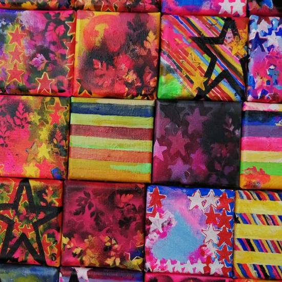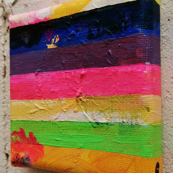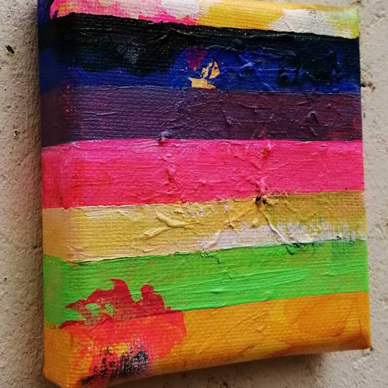 A Ten painting brought to a conclusion on a daily basis, always on a 10cm square canvas. The series will go on throughout September and maybe beyond, the current paintings are all for sale ar a price of ten pounds each via the Cultivate shop (all about the Ten), from next week on the daily paintings will be held back and offered first at the same price of ten pounds via the forthcoming virtual edition of tbe Art Car Boot Fair that happens on September 20th. The 45th painting was yesterday, I guess that was almost a commitment to continue through to September and the Fair with the Ten paintings just then…