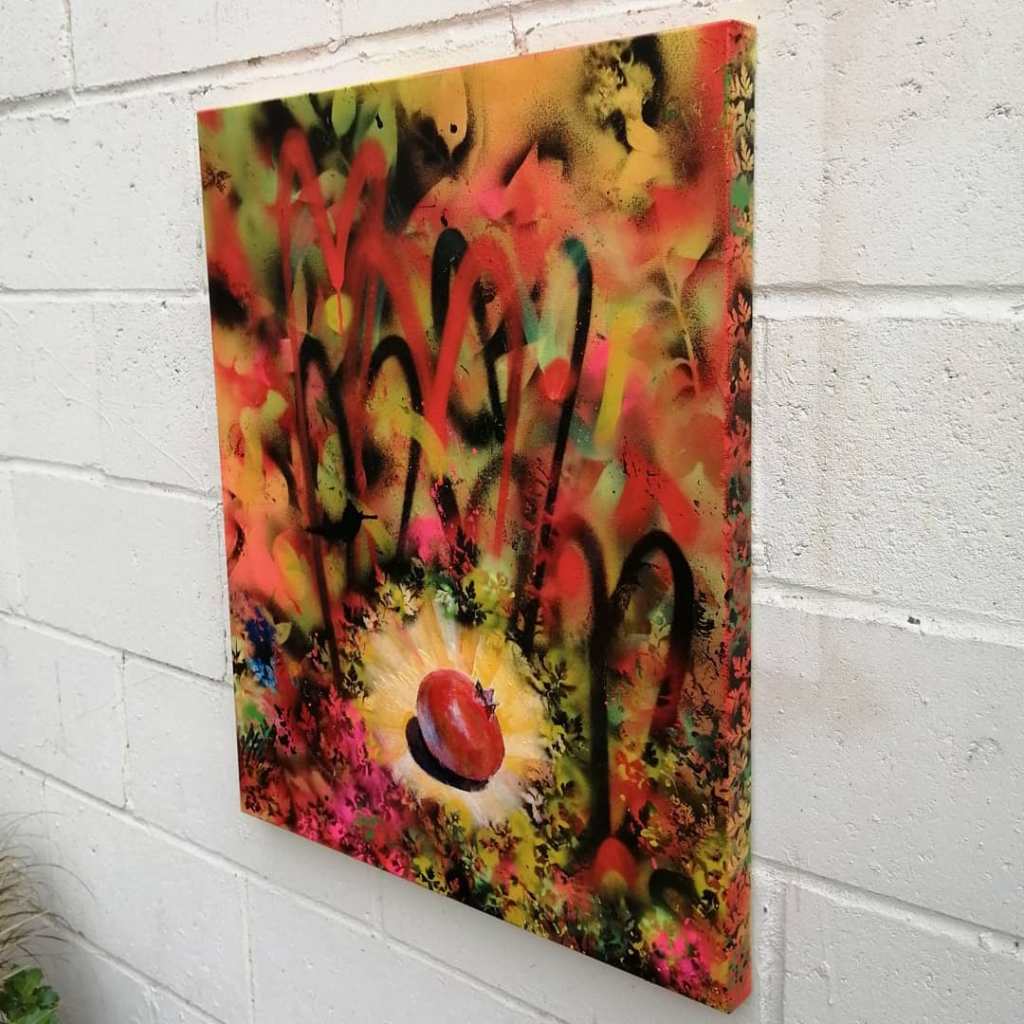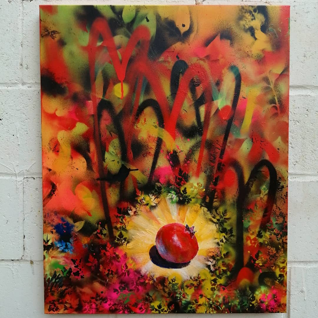 “Out Of Nowhere – yet Another East London Pomegranate” ( Nov 2020) – Acrylic on canvas, 60cmx75cmx4cm