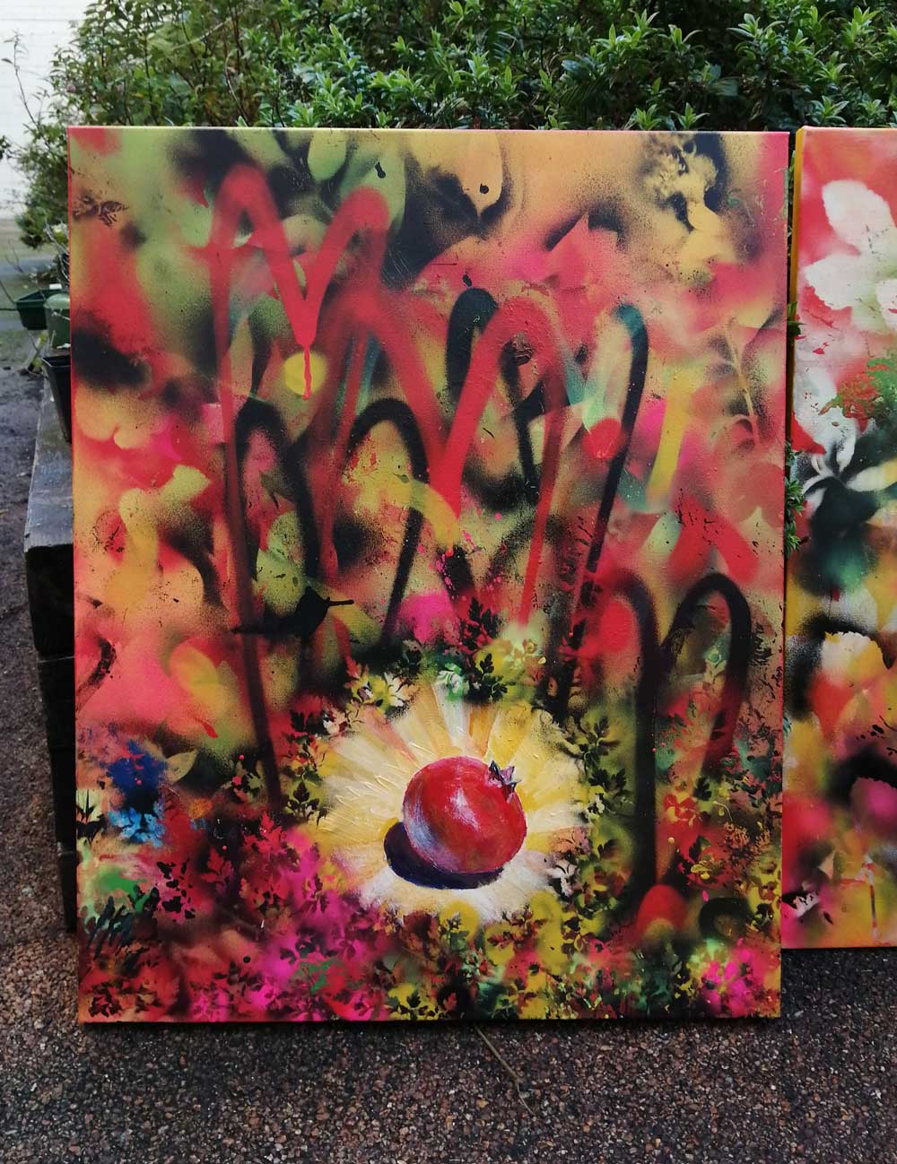 “Just Another East London Pomegranate” (October 2020) – Acrylic on canvas, 20cm x 20cm x 1cm