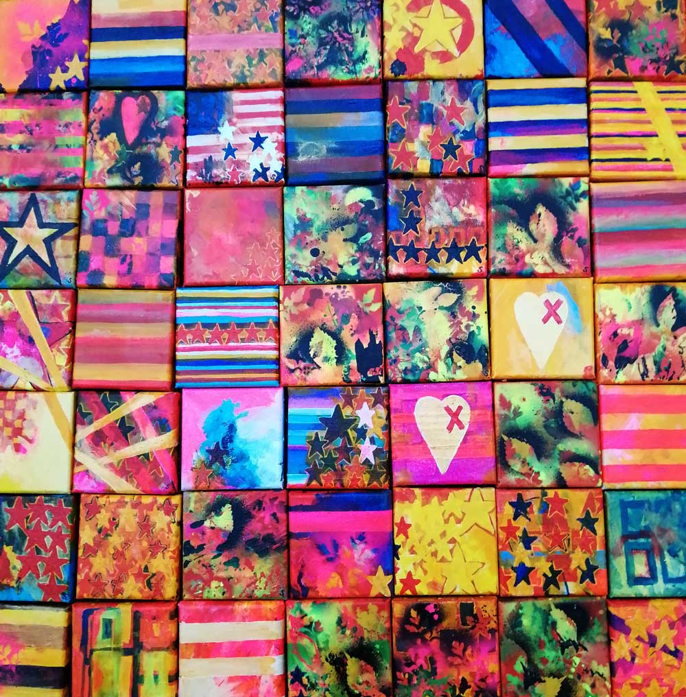 “X Marks The Spot, over two short sharp East London weekends, a return to the flowers of Columbia Road and the beautiful old greengrocers shop that is now Shipton Street Gallery. A masked-up socially distanced Xmas pop-in. A pop-in mind you, not a pop up, we don’t do pop ups. A revolving pop-in for just two weekends. An art event featuring a revolving cast of guest artists joining Sean in a gallery space alive with smaller (dare we say gift-sized?)-affordable art. Expect original paintings, prints and more, including the latest in Sean’s ongoing series of daily concluded Ten paintings that have been emerging for the last 150 days or more. A series of daily concluded paintings always of on a 10cm square canvas and always offered for sale at a price of just ten pounds. The prices will range between £5 and £200”