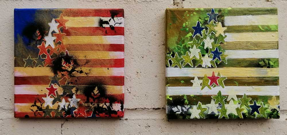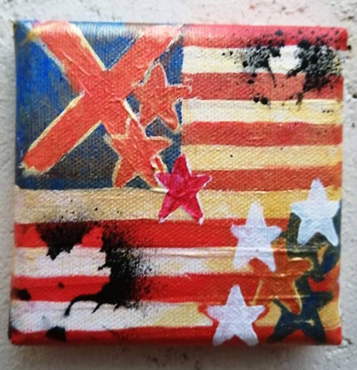 A new painting “Untitled – Stripes No23” – 16th January 2021. Acrylic on canvas, 20cm x 20cm x 1cm. The ongoing matter of painting stars and stripes as we watch on. Trump is almost dumped, the horror is almost over, bring on Wednesday. Joe Biden has signalled to the rest of the world that one of his first moves will be to rejoin the Paris Accord and listen to the science and the scientists in terms of the climate change crisis. After the horror of Trump there is at least hope of something greener, the hint of of someone at least prepared to point things in the right direction.