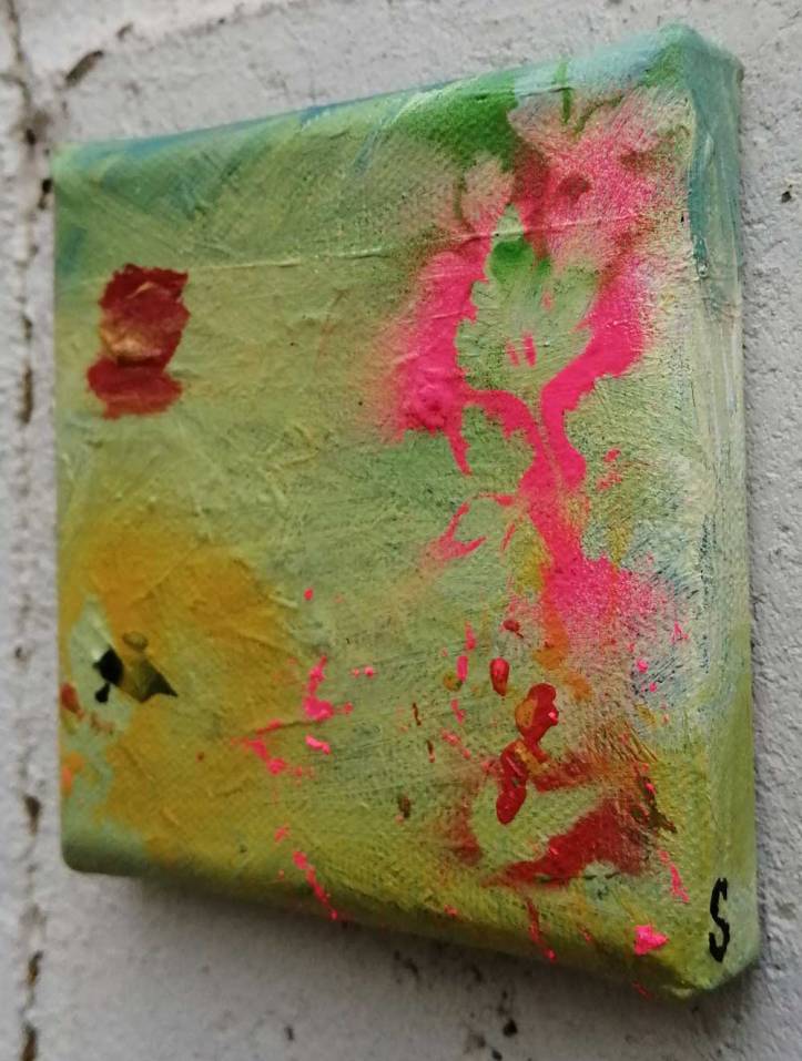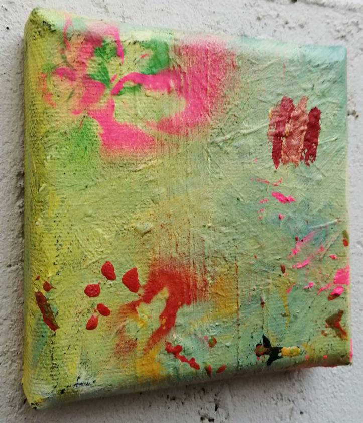 “Ten:223 (Currently) – 19th February 2021 – Acrylic on canvas, 10cm x 10cm x 1cm – sold