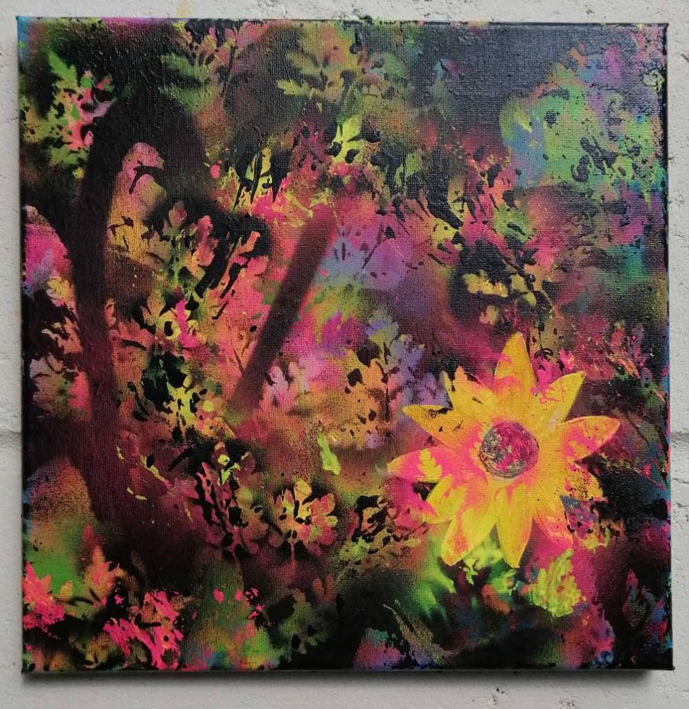 “Out In The Garden (A Flower?)” Acrylic on canvas, 20x20x1cm – June 2021