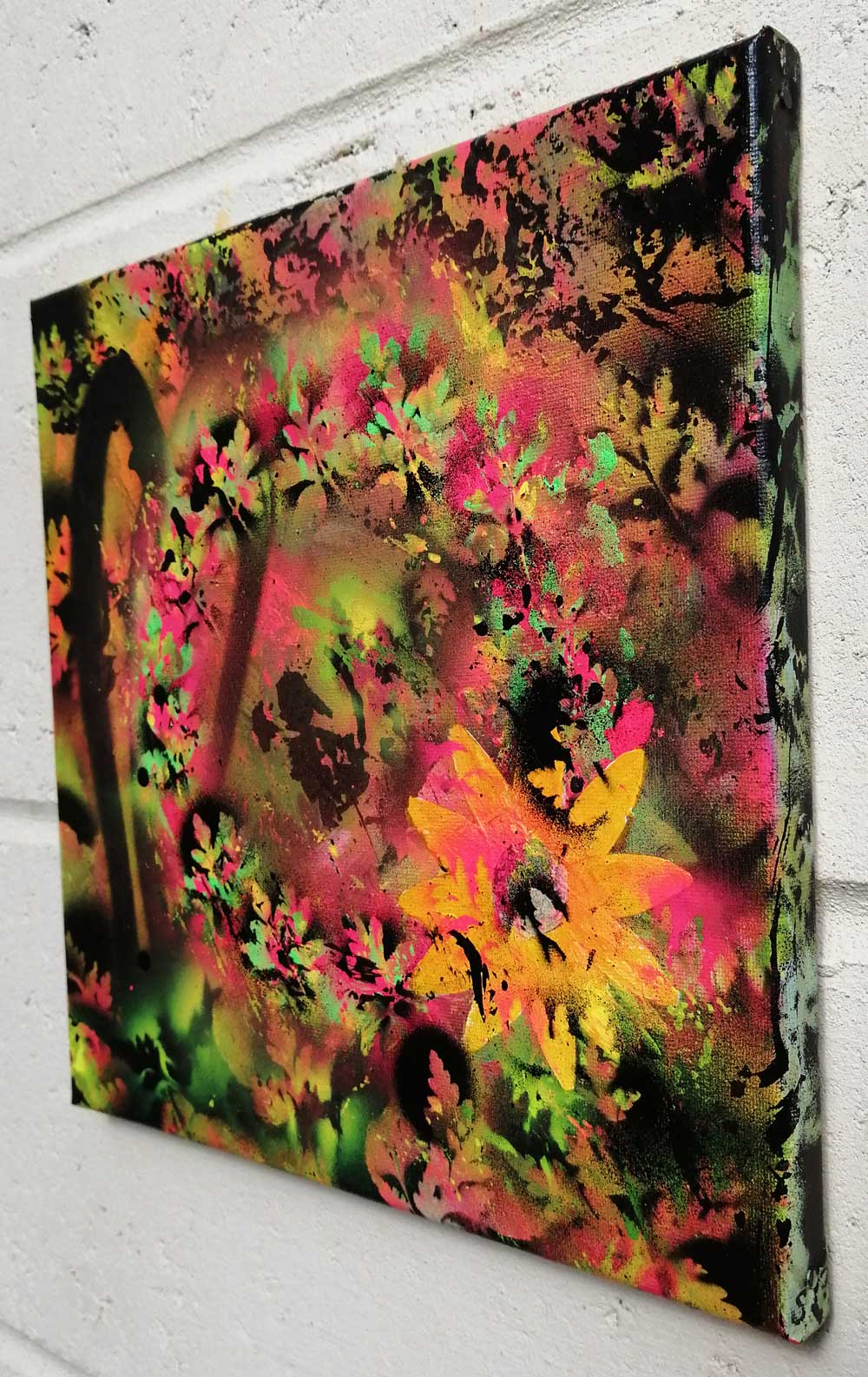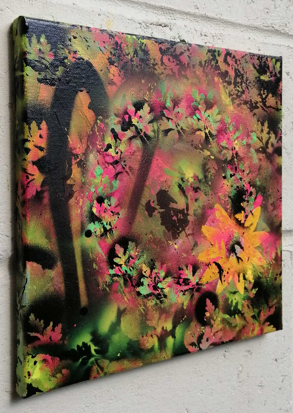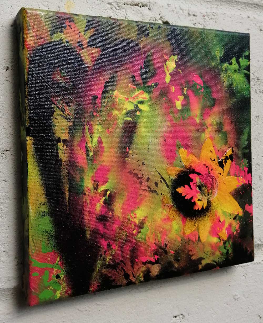 “Out In The Garden (A Flower?)” Acrylic on canvas, 20x20x1cm – June 2021