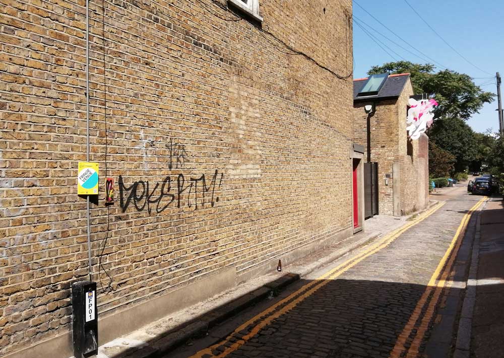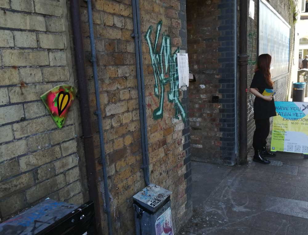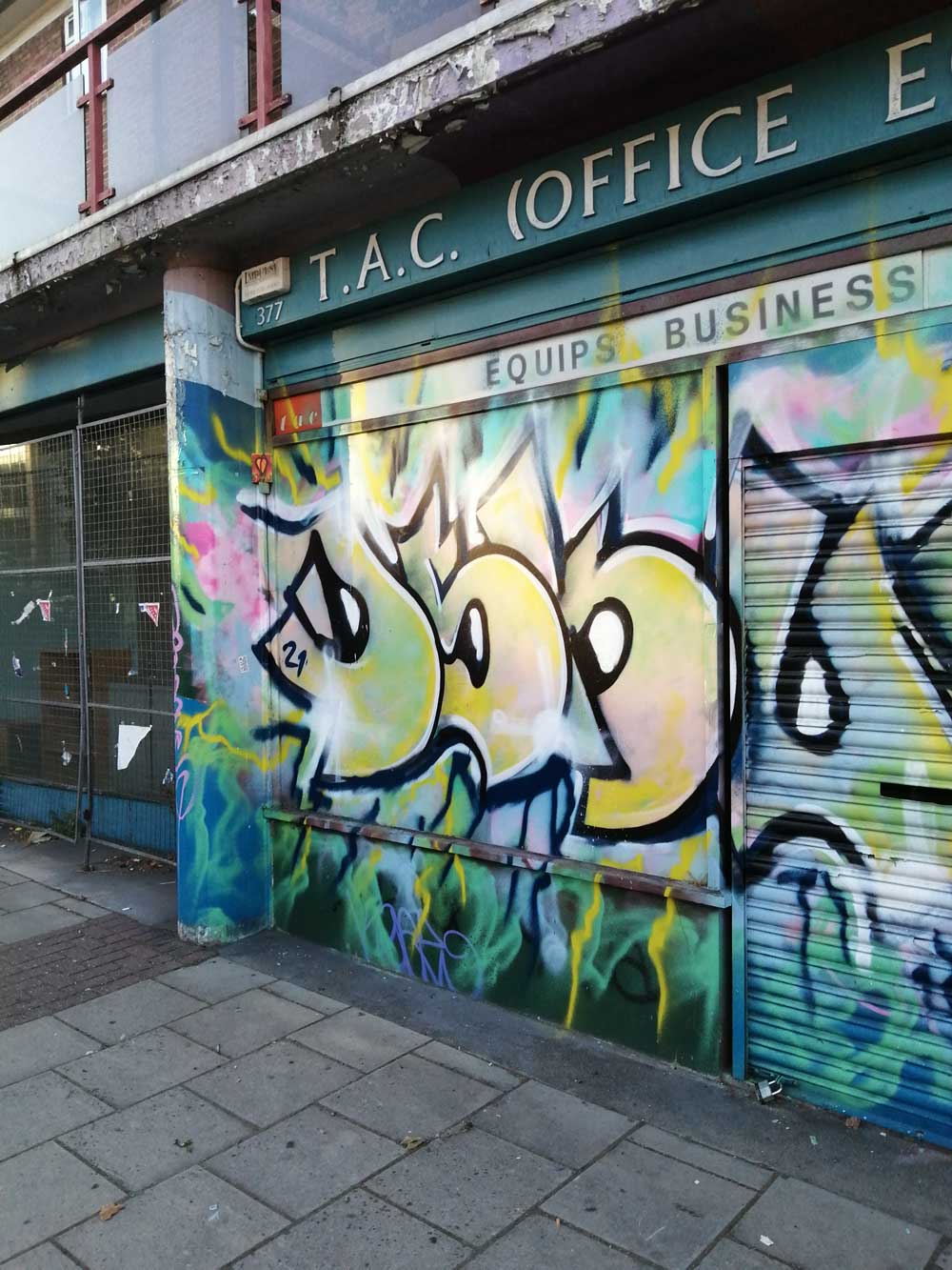 […] rather weather-hit #43Leaves pieces that started and should have ended) at last month’s Deptford X. You really can’t be hanging piece of art on walls outside when there’s high winds and […]