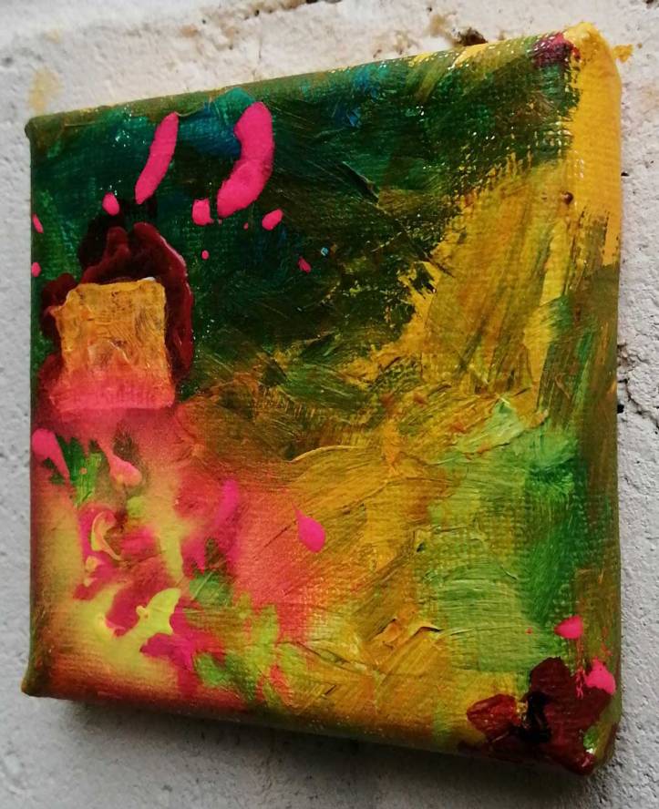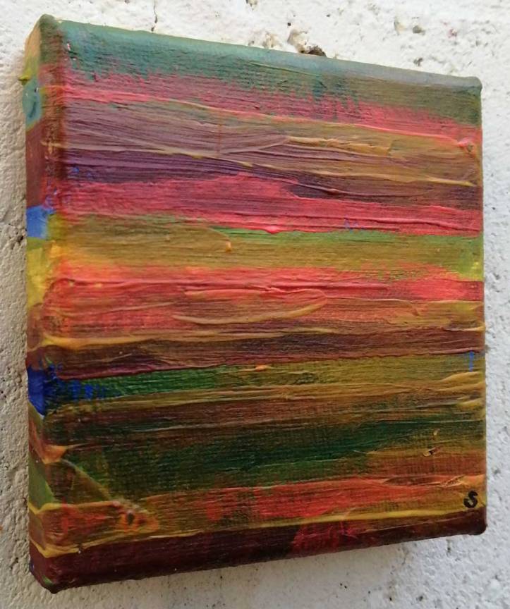 “Ten:374 (Mixing)” – 20th July 2021 – Acrylic on canvas, 10cm x 10cm x 1cm (sold)