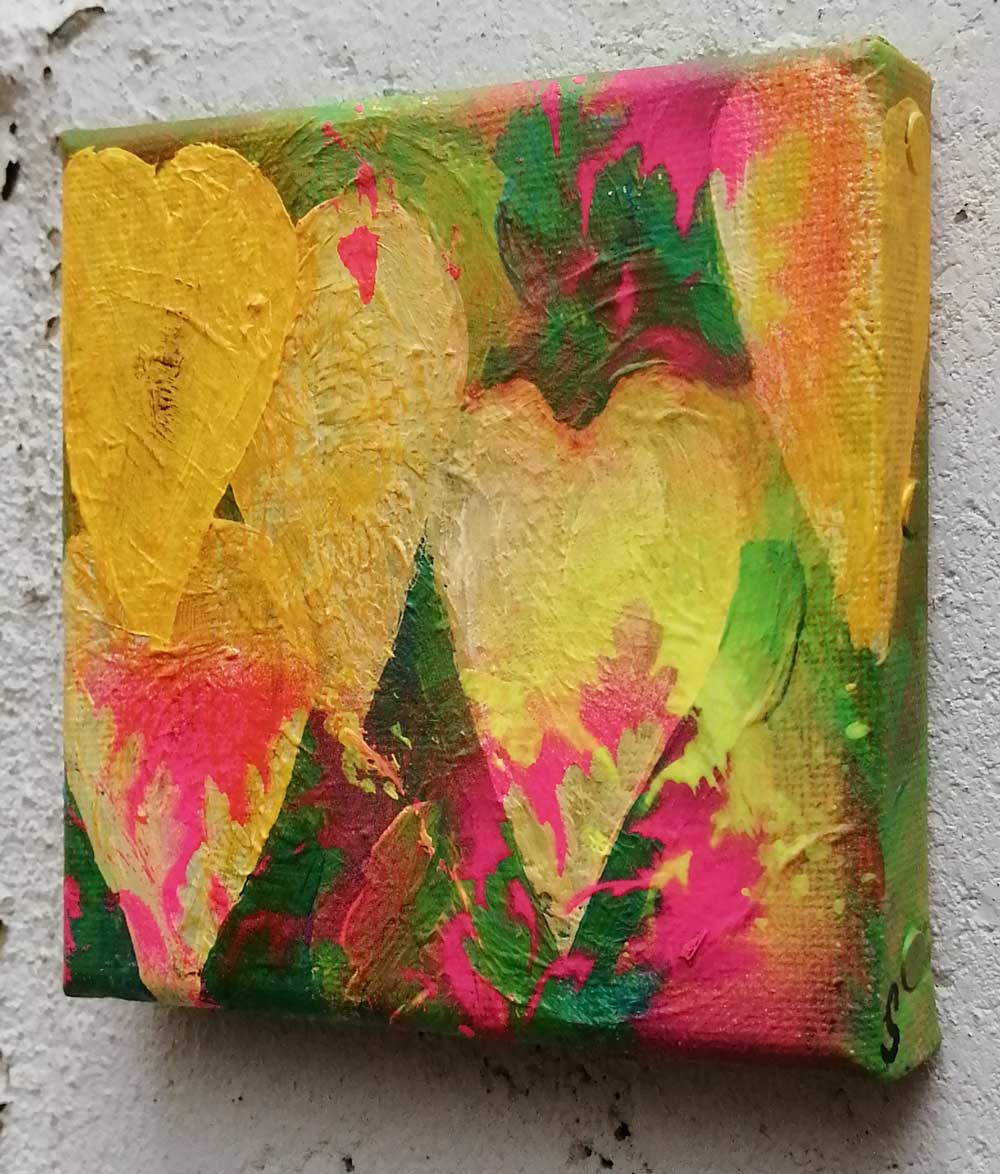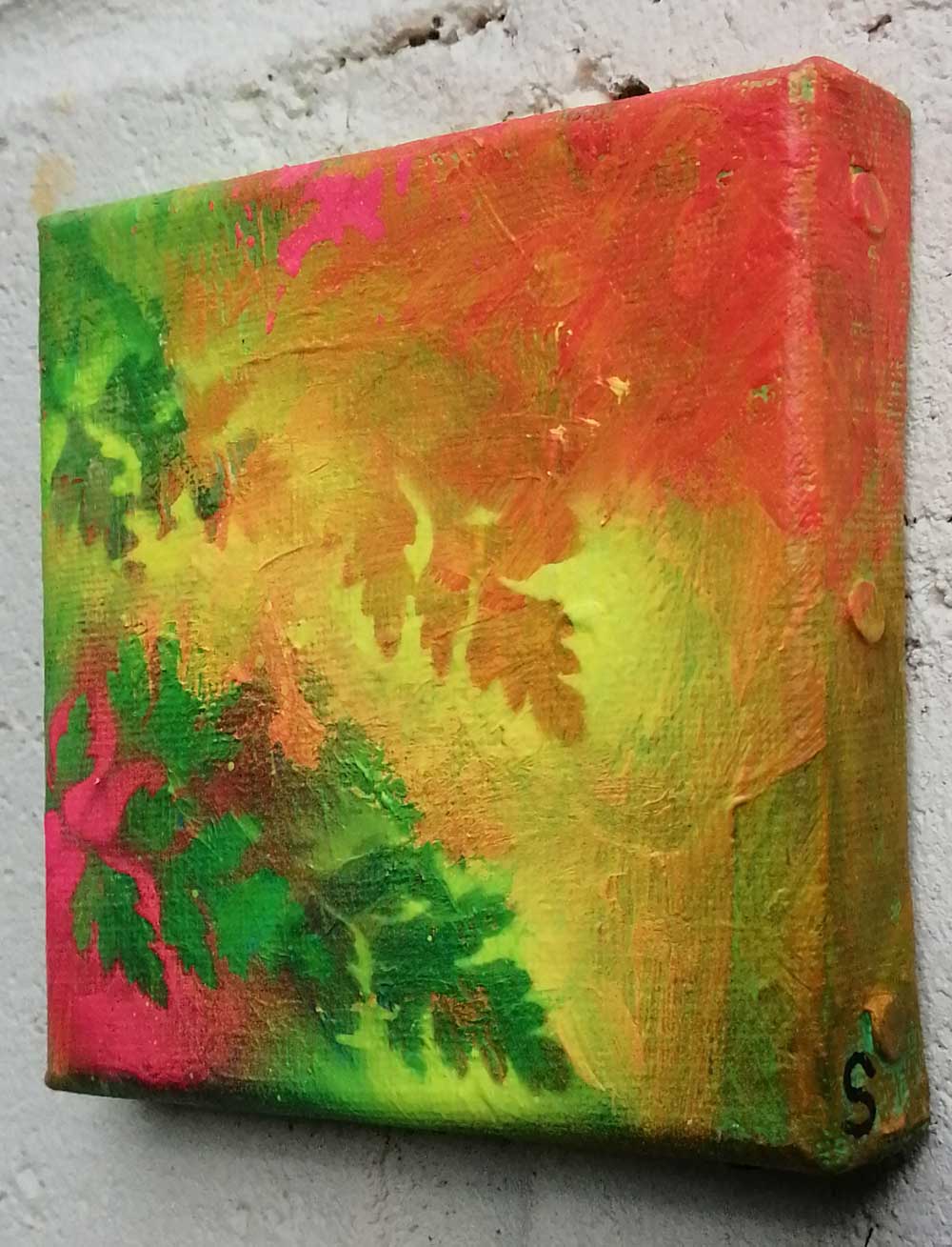 “Ten:365 (Leaves)” – 11th July 2021 – Acrylic on canvas, 10cm x 10cm x 1cm (sold)