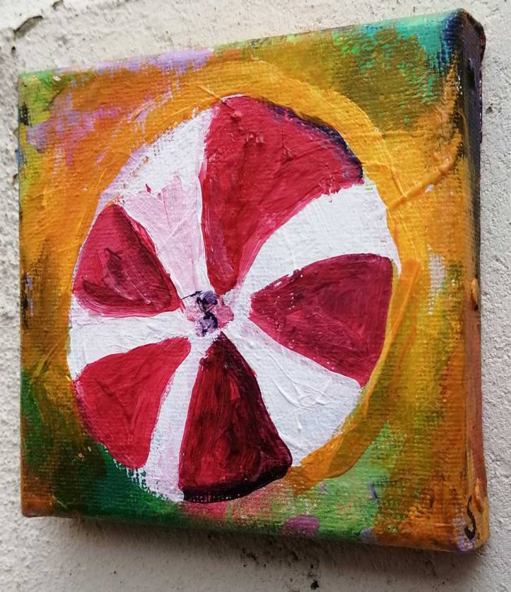 Ten:358 (Petunia)” – 4th July 2021 – acrylic,, on canvas, 10x10x1cm