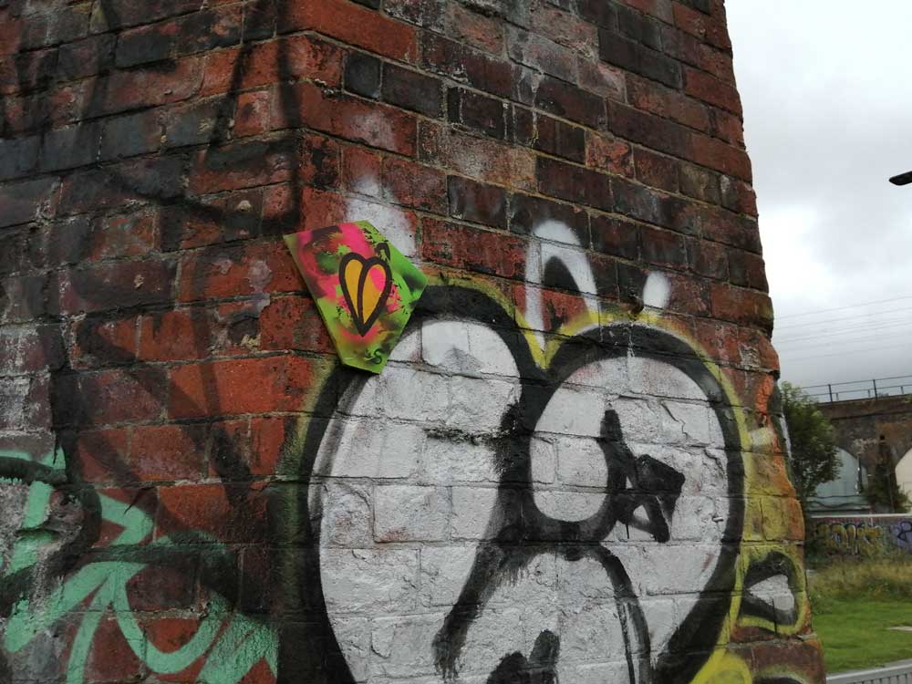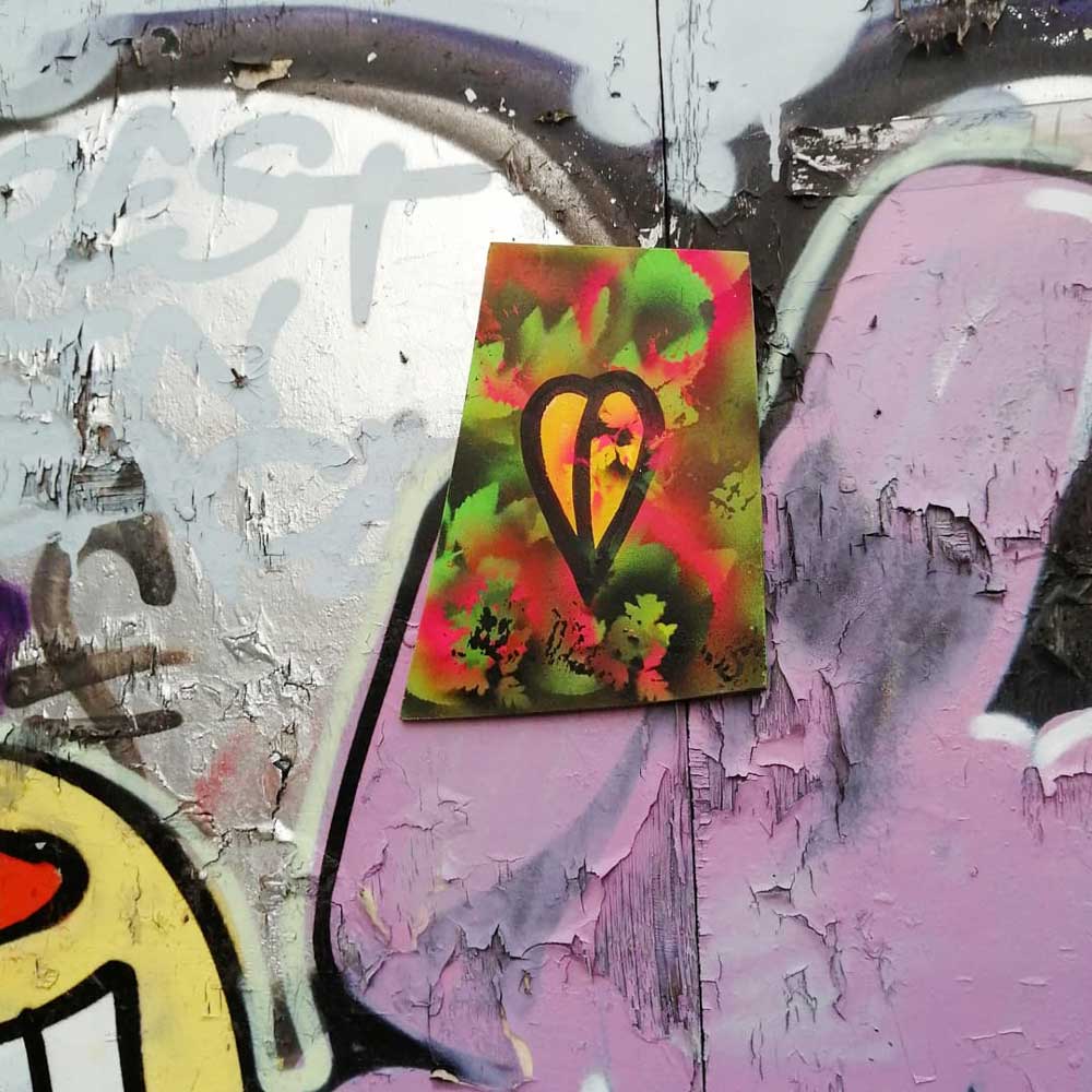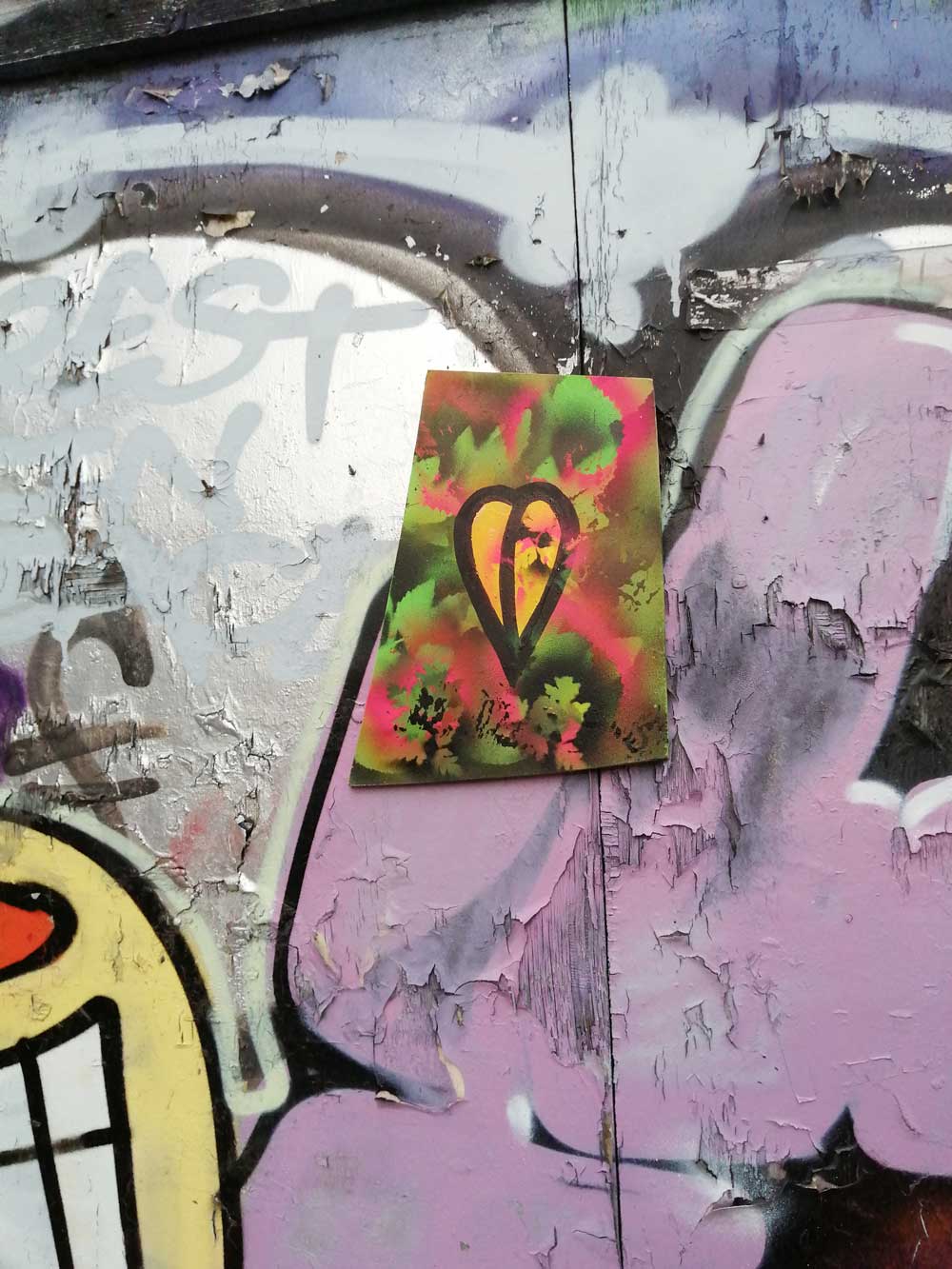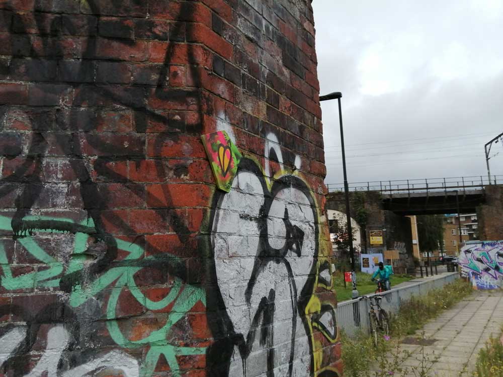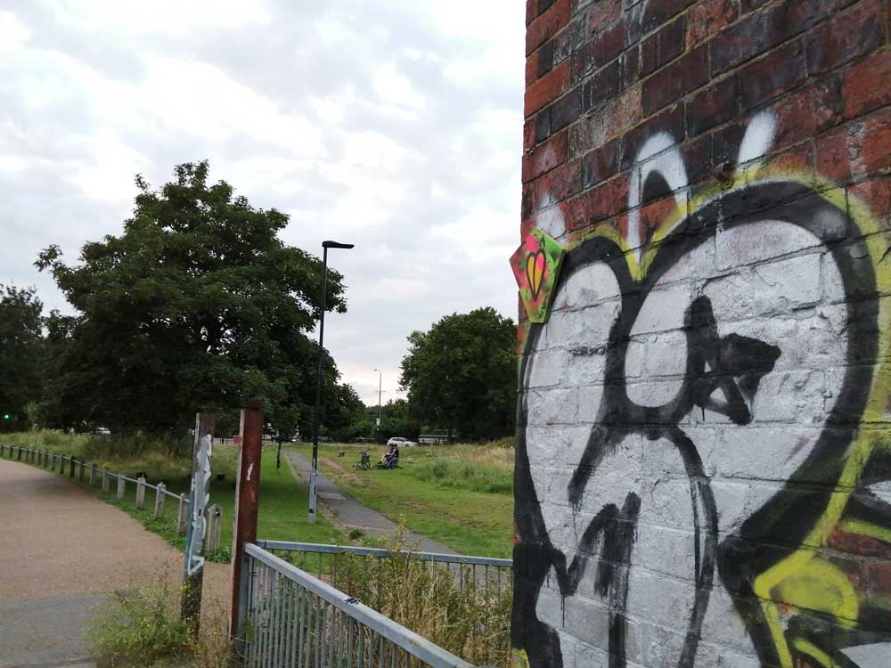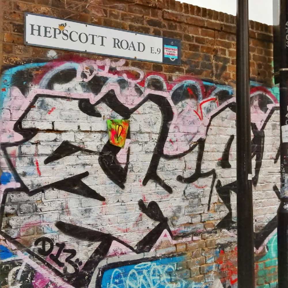 The latest rather weather-hit #43Leaves pieces that started and should have ended) at last month’s Deptford X. You really can’t be hanging piece of art on walls outside when there’s high winds and rain, there were 17 left after Deptford, there are now 14, three more have been left hanging since, two were left hanging on the walls in Hackney Wick last week, one down towards the Limehouse Cut here in East London. For those who don’t know, a #43Leaves piece is a piece of work in 43 parts, 43 paintings on found unwanted #recycle material, material picked up off the streets, cleaned up, painted on and then left hanging back out there for people to just take.should they wish to do so.