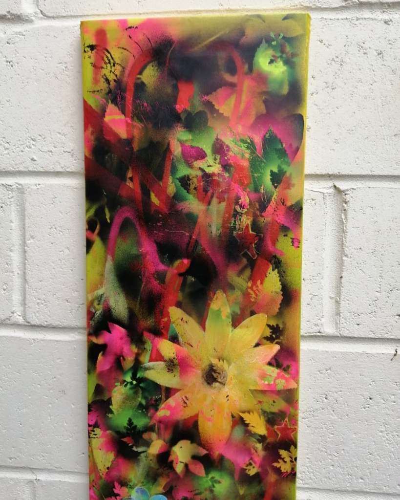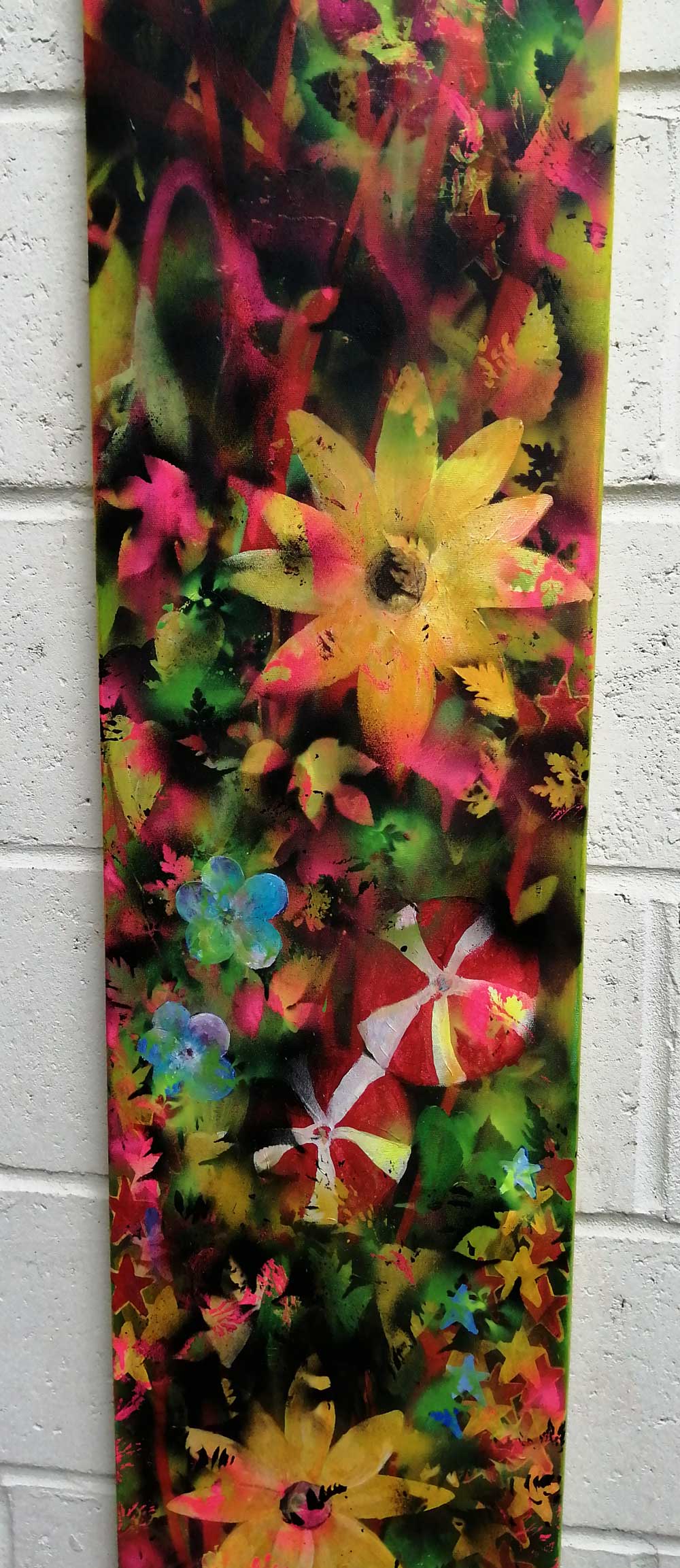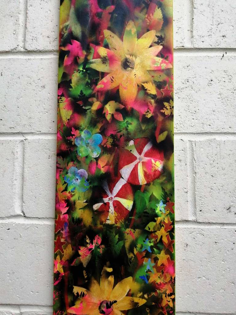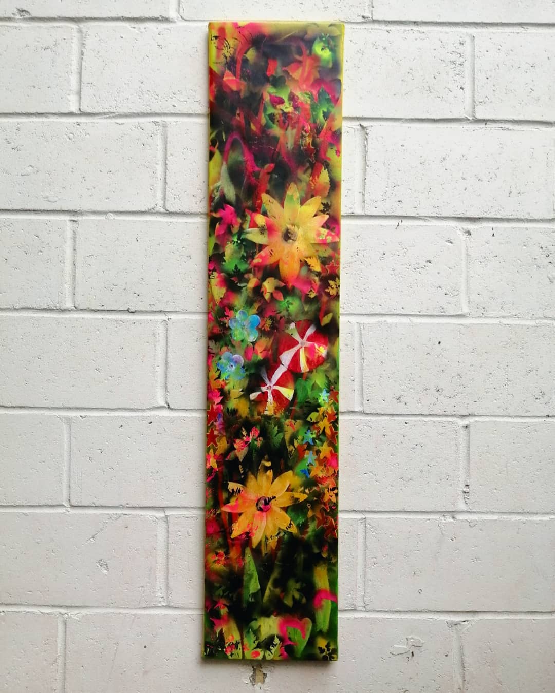 A new painting, “Squeezed The Lids And Down…” August 2021, Acrylic on canvas, 150cm x 30cm – A painting concluded today after some gardening over the last week or so. Oe of the larget pieces that are being painted at the moment…