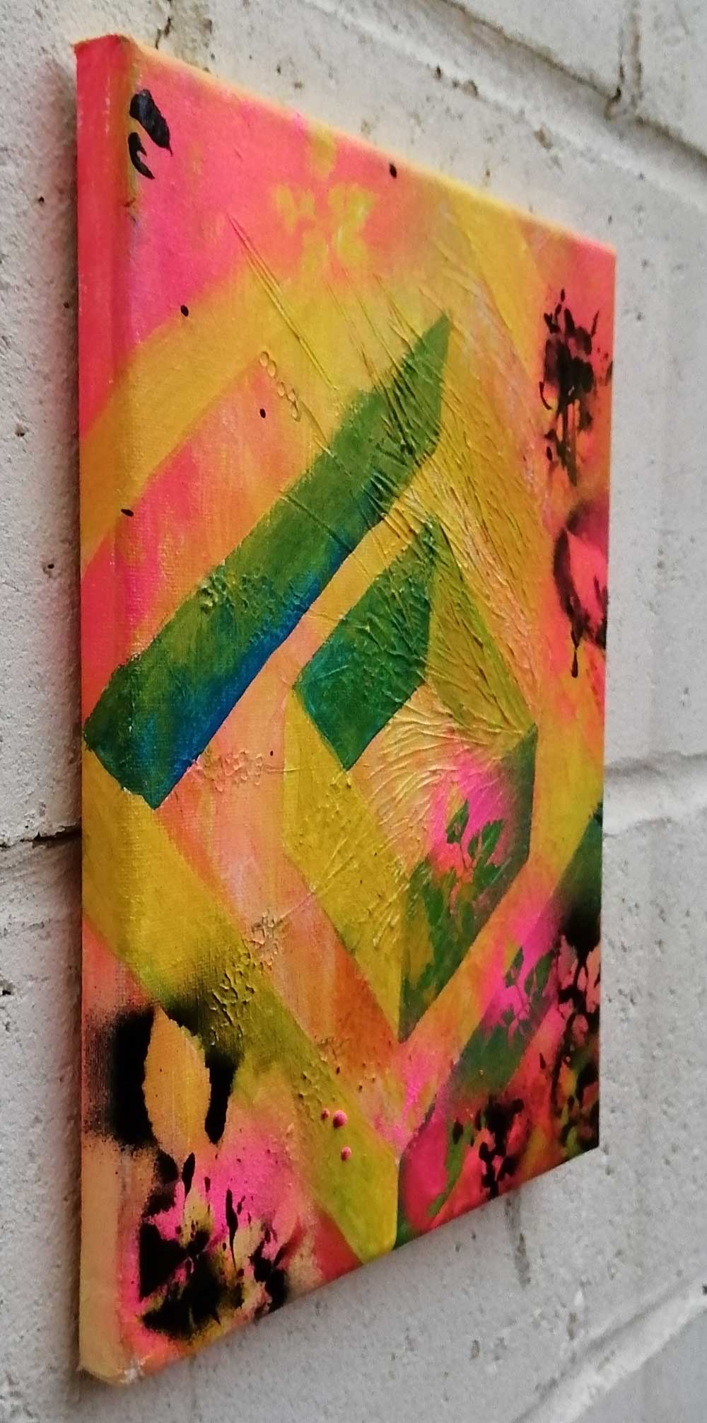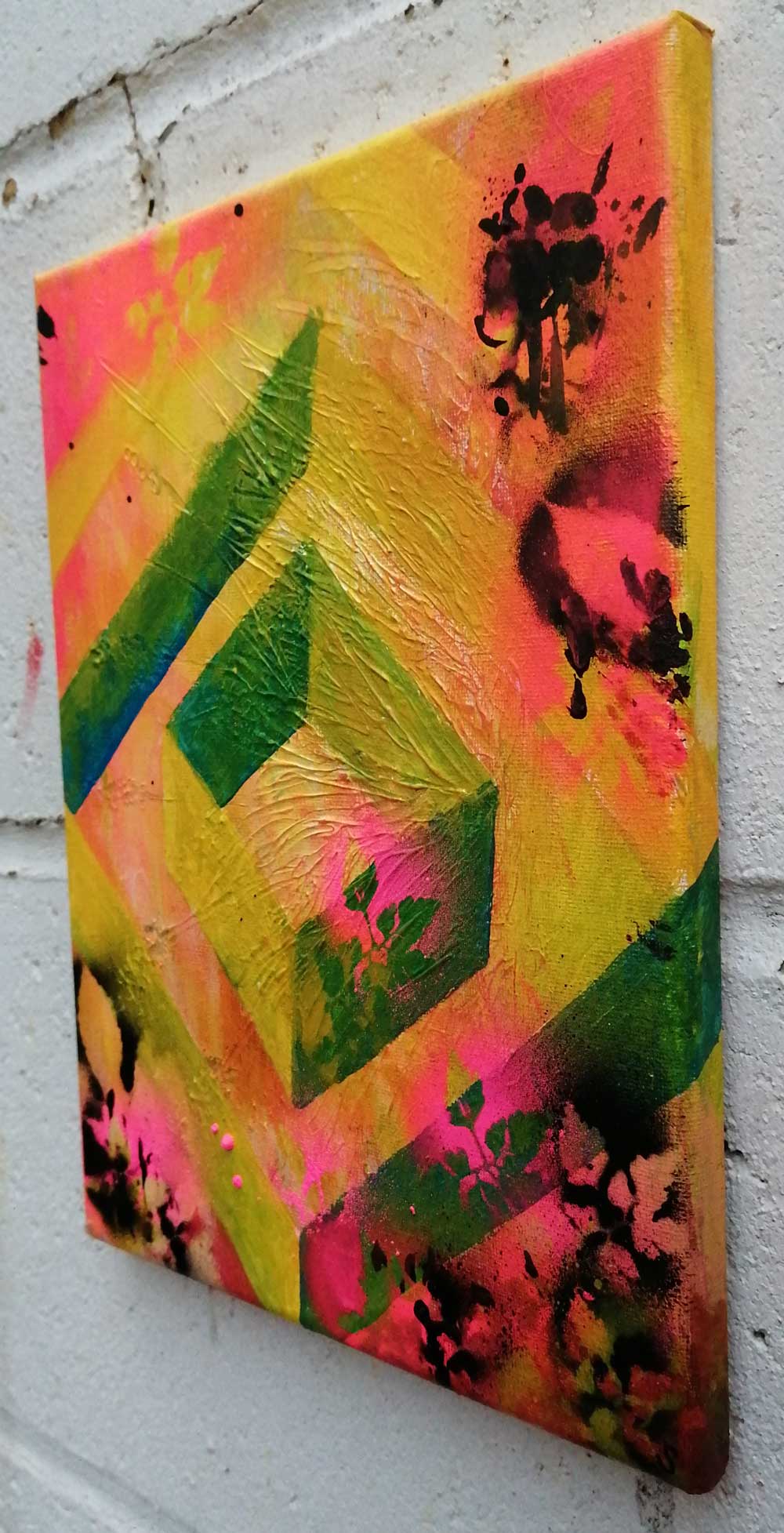 A new painting on a found canvas, there is always a new painting. This canvas was found with a unfinished half-hearted painting of a tree on it, and, as we all know, a canvas can’t be wasted. There is a particular pleasure in recycling a canvas and making use of the marks others have made. There was a great texture on the canvas already (although there wasn’t much of a painting on there jsut a half finished brown and grey looking tree. that looked like it had been given up on). Material can’t be wasted like that, recycling and reusing is a big part of what i do here, Id far rather paint on a recycled canvas than a new one. The painting has now been added to theCultivate Gallery on-line shop