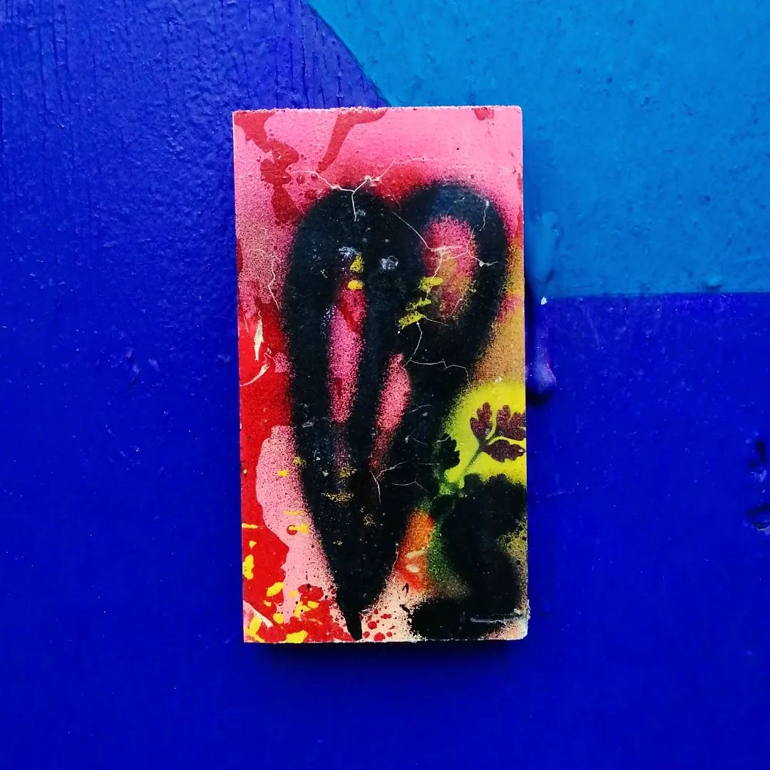 January’s #43Leaves piece goes on, A new #43Leaves piece, a new piece of work for January 2022. a piece in 43 parts. 43 paintings, 43 leaves on found unwanted recycled material. Material found, cleaned up, painted on and then hung back out there for people to just take should they wish to. It started on New Year’s Day in East London, it will go on throughout the month. Who knows where January will take us? Who knows what the Winter weather will allow (wind is not the friend of an art drop). Seventeen paintings have been left out there so far, view the first six via that link you just passed, and here, on this page, are the next eleven, it goes on. Good to get out there at the start of a new year, it has been all East London so far but do watch this space