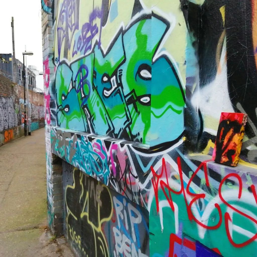 The January 2022 #43Leaves piece goes on, 20 pieces have gone out now, another six or seven are in my bag. As I said a couple of days ago, these pieces are as much about the people who chose to take them and the places they are hung as they are about the paintings themselves – about the photos other people post on their own social media, about where the pieces go, the hashtag is part of it. And in answer to a rather irrate question, no, I don’t knock my own nails in, the pieces are only ever hung on screws or nails that are already there waiting, no damage was done, nothing was harmed and these pieces are really not meant to stay there for too long, most of the time they go within hours, and yes, I am very picky in terms of where I choose to hang them, I did say all this a couple off days ago, I just wanted to post images of the most recent drops, it goes on, yesterday it was Up The Bracket Alley….