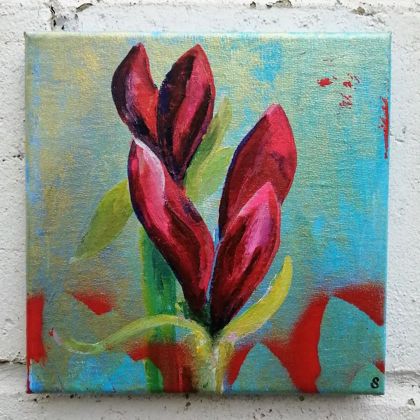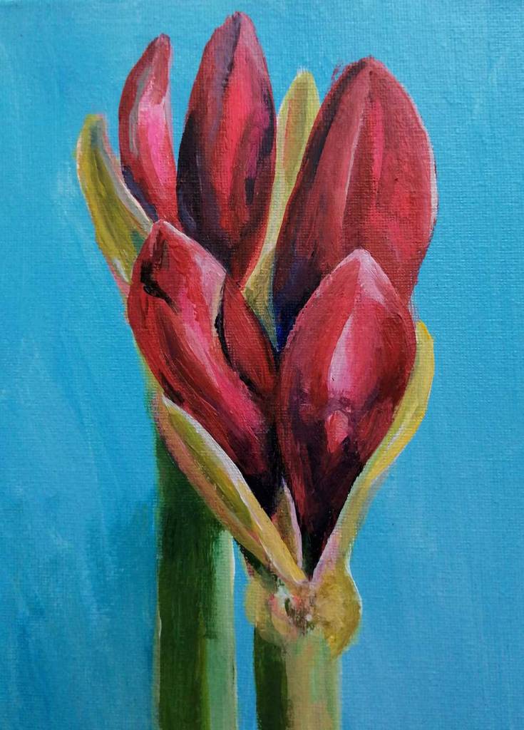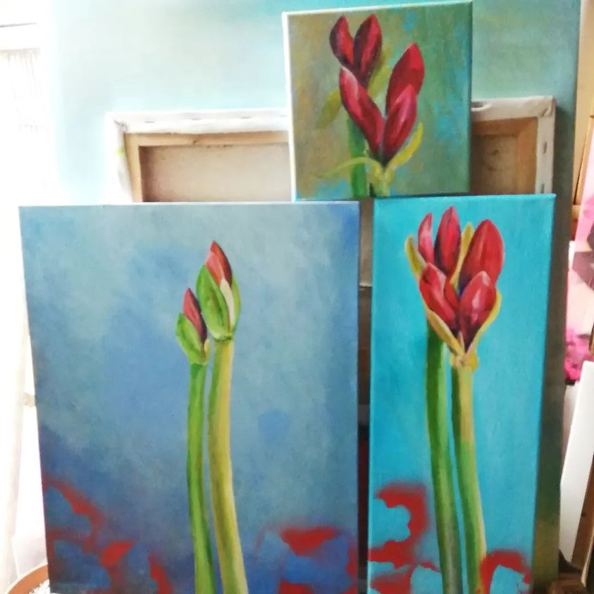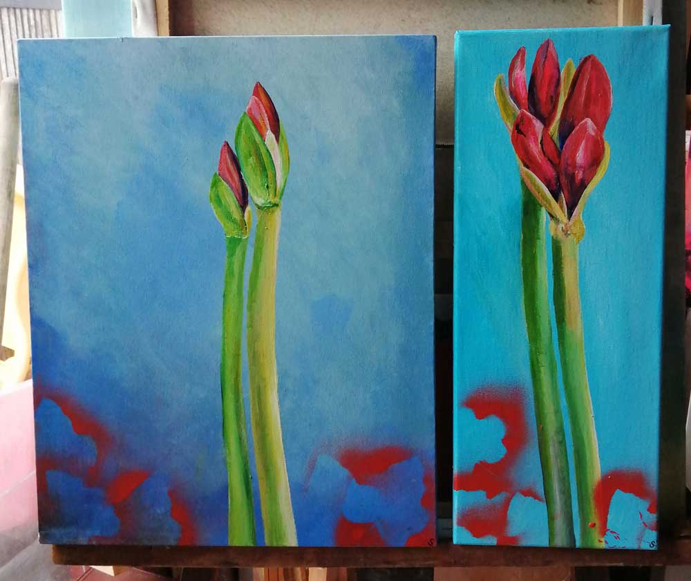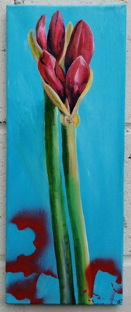 “The Amaryllis (2023)” – Acrylic on canvas, 20x50x1cm – The annual painting of an Amaryllis, this one seems to be a little later to emerge, it is demanding attention again here in the middle of March though