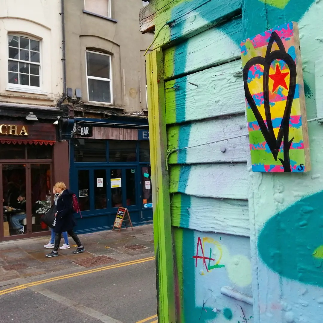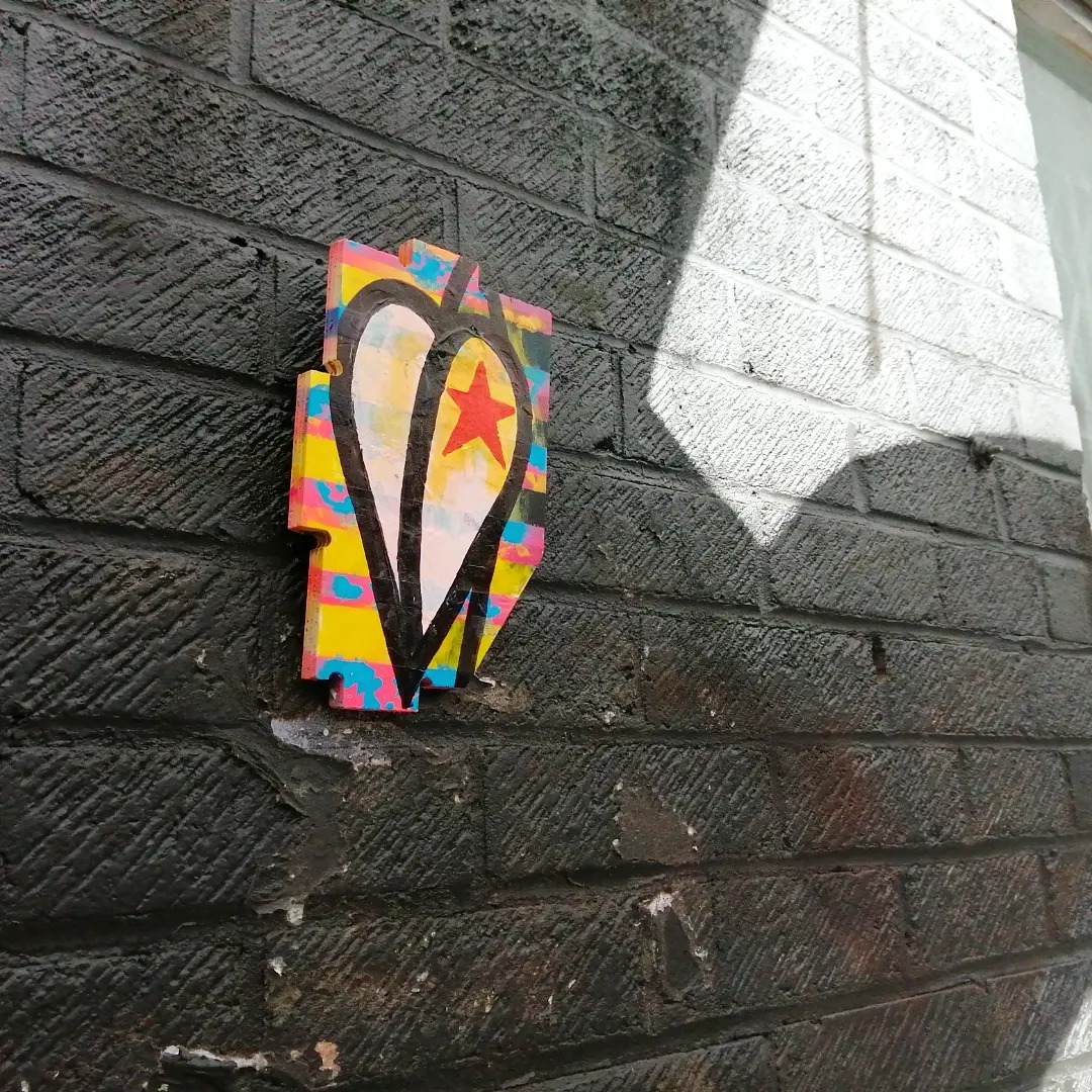 It is the hope with these art drops, these leaves, that people who find them will use the hashtag and get involved, that they will post photos of themselves with the pieces they have found, that they might complete the story by telling us where the pieces have gone to once they’ve been left. Most of them do appear to go quite quickly, I never wait to see, the scene of the crime is left as soon as possible, but I rarely see a piece when next I pass (I bet number 5 will still be there, I did find the perfect spot in terms of the colour). This piece was left in March, Martinha found it and posted about it…