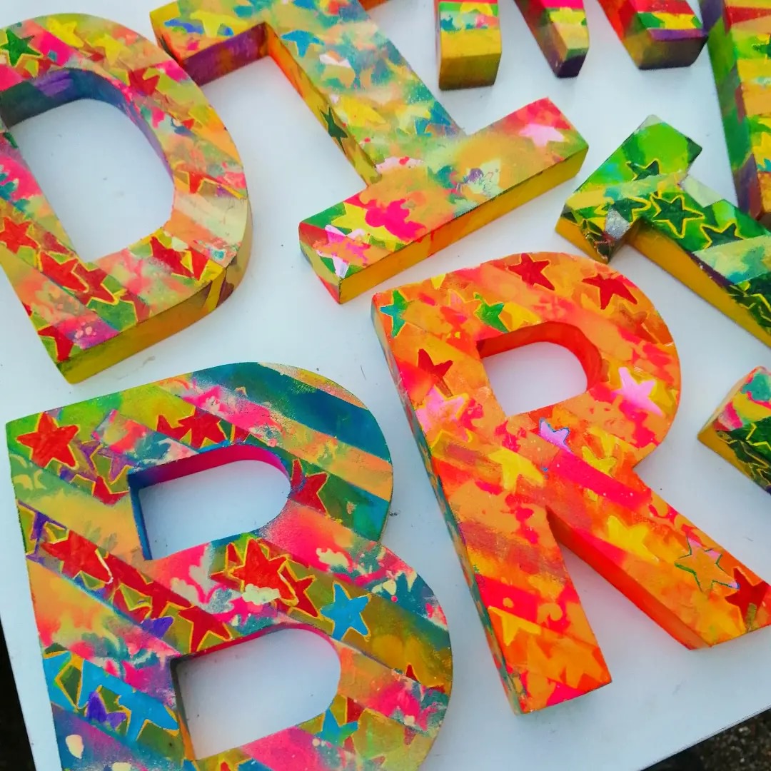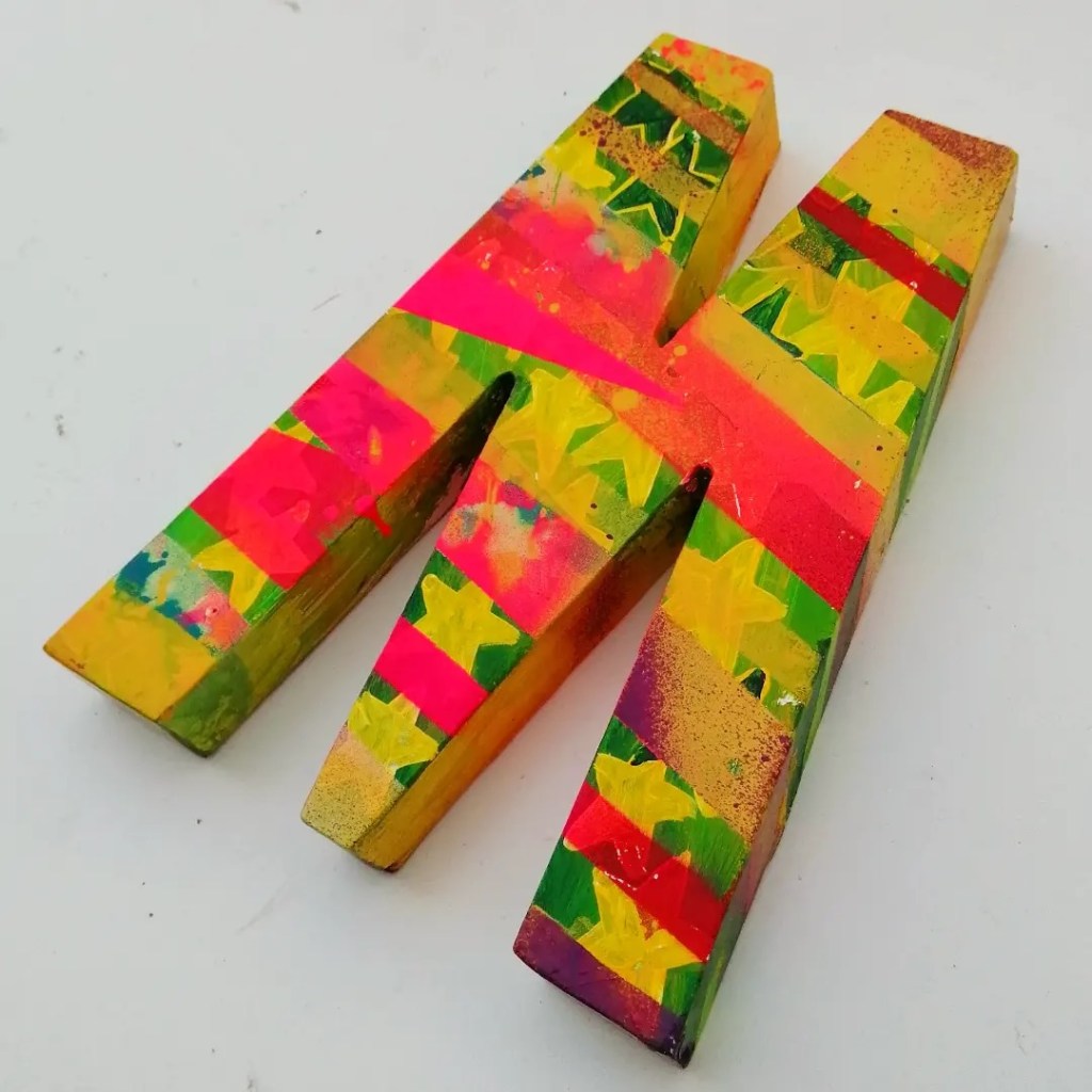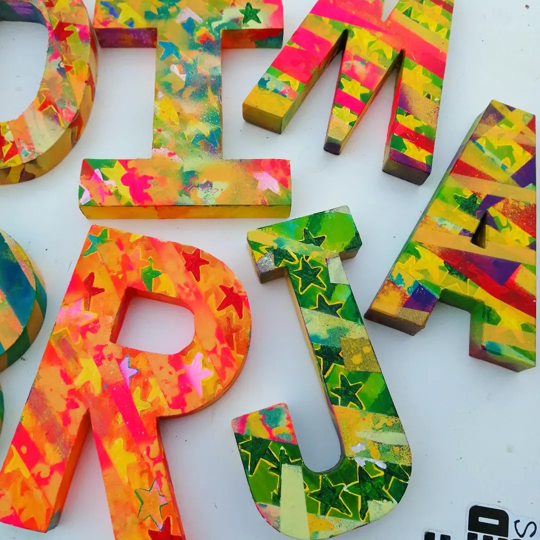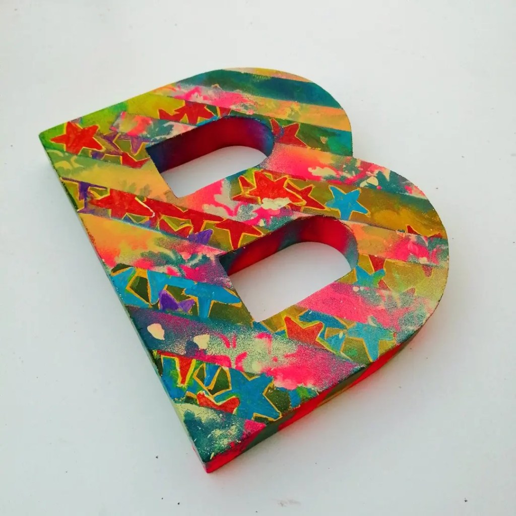 Letters, pop art, hand painted 3d letters, I painted one as a gift for someone, someone saw it and asked if she could have one, then someone else wanted one, then someone said “can I have a B Sean?”, it seemed like engaging fun, sometimes art needs to be fun,. Letters, the painting of letters, something that occasionally happens. Acrylic on very strong cardboard, each one approximately around 20cm x 20cm x 3cm, just something that happens now and again…