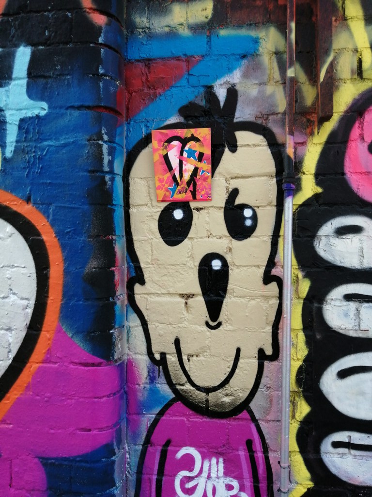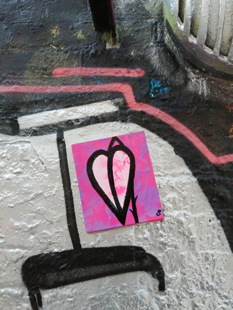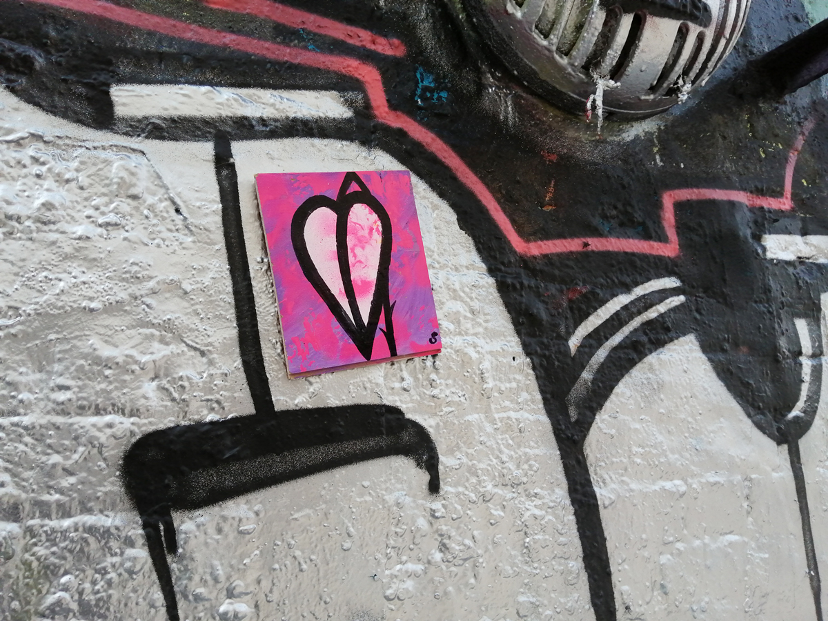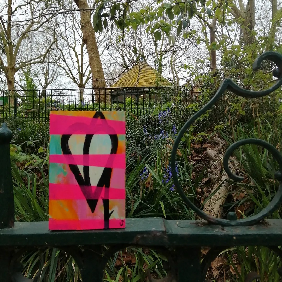 The April #43Leaves piece, well part 17 to 26 of the month-long drop. The art drops, or the #43Leaves piece have been going on all year, a piece left here, another there, lot’s more about it all here. April saw a more formal piece in 43 parts, 43 paintings, left hanging on the streets during the month of April. I do keep repeating that the recycled aspect is a very important part of all this. The leaves, for they are leaves, whatever you might see, I paint leaves (if you wish to see something else that’s fine, there is no right or wrong). The paintings are always on found unwanted material picked up off the streets, out of builders skips, left on pavements, things that were heading for landfill, things considered of no use any more. Material found, cleaned up, painted on, and then left hanging back out there for people to just take should they wish to.