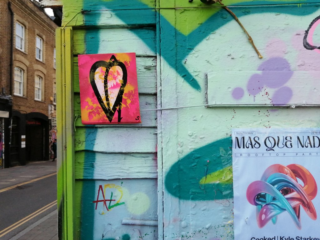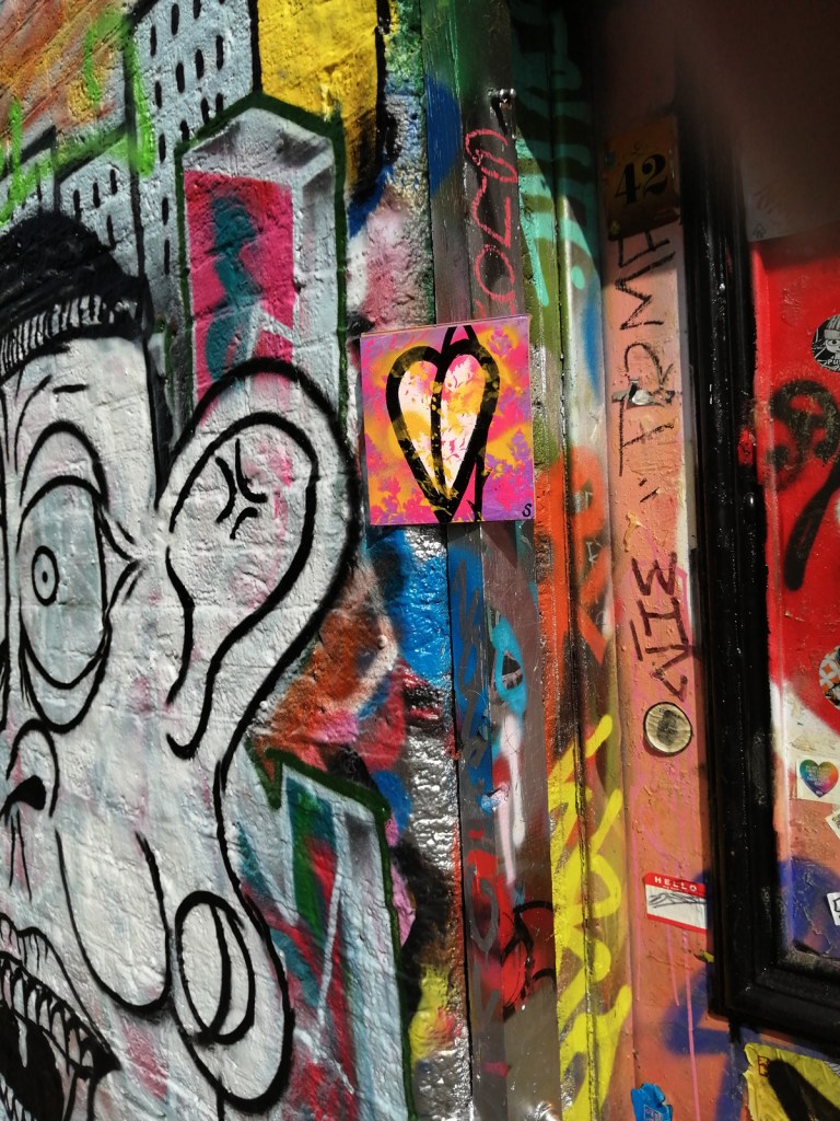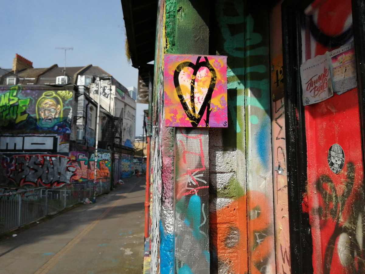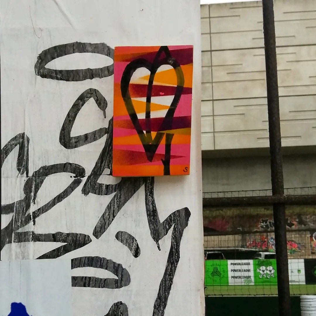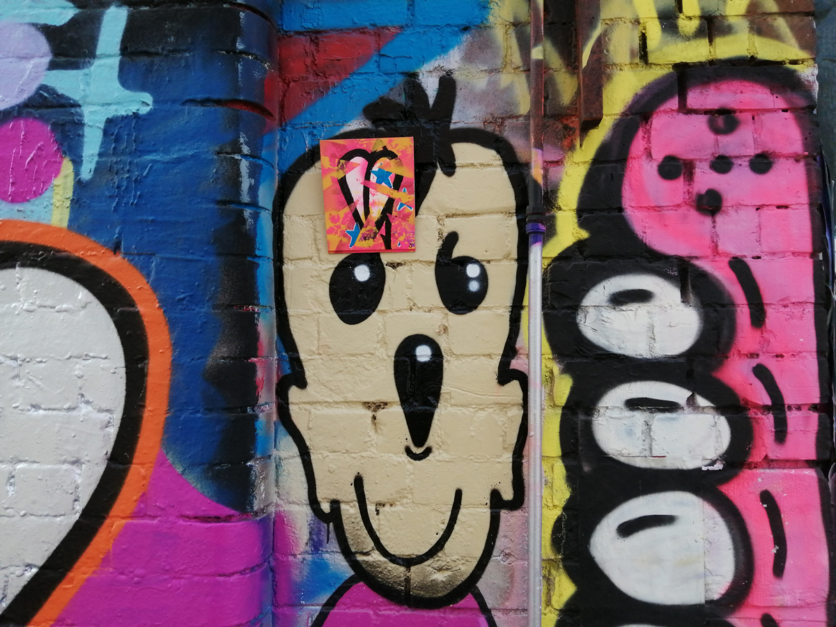 The April #43Leaves piece, well part 17 to 26 of the month-long drop. The art drops, or the #43Leaves piece have been going on all year, a piece left here, another there, lot’s more about it all here. April saw a more formal piece in 43 parts, 43 paintings, left hanging on the streets during the month of April. I do keep repeating that the recycled aspect is a very important part of all this. The leaves, for they are leaves, whatever you might see, I paint leaves (if you wish to see something else that’s fine, there is no right or wrong). The paintings are always on found unwanted material picked up off the streets, out of builders skips, left on pavements, things that were heading for landfill, things considered of no use any more. Material found, cleaned up, painted on, and then left hanging back out there for people to just take should they wish to.