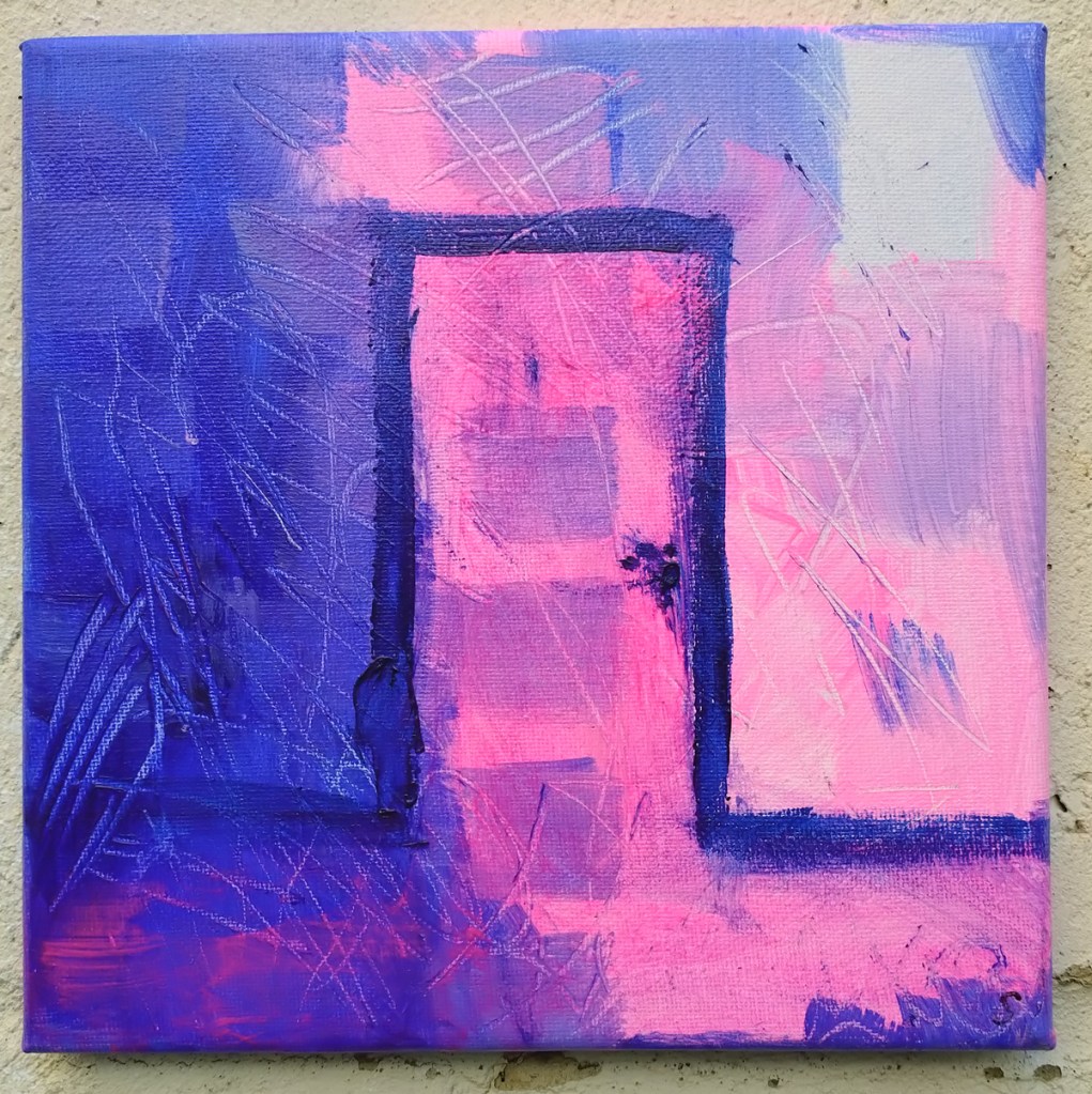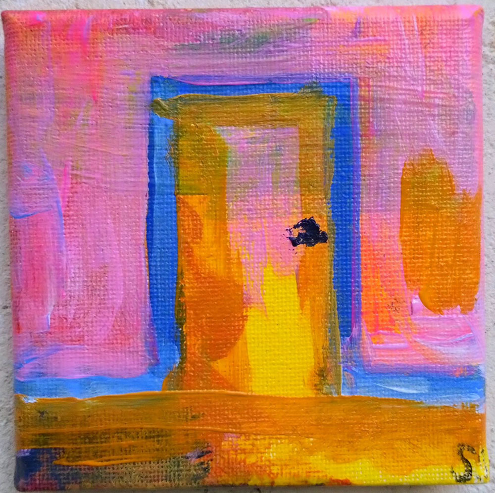 “What’s Really Behind The Blue Door?”:(Sept 2023); – Acrylic on canvas, 20x20cm