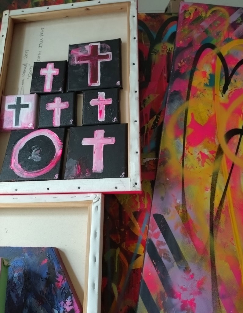The last few days nave mostly been black, red and pink, these smaller paintings have been happening alongside larger pieces that are still evolving in the studio. I haven’t used black paint for ages (well besides black spray paint), I haven’t loaded a brush with black paint for a rather long time. Some of these, the ones that haven’t sold already, have just been added to the Cultivate online shop…
