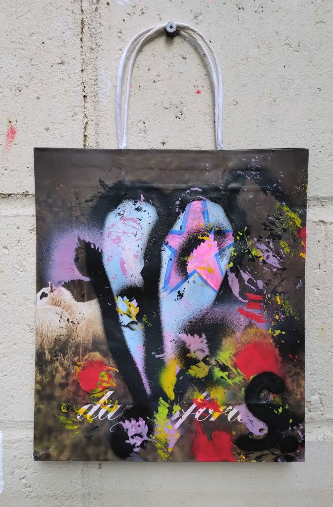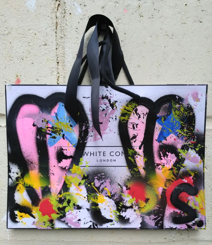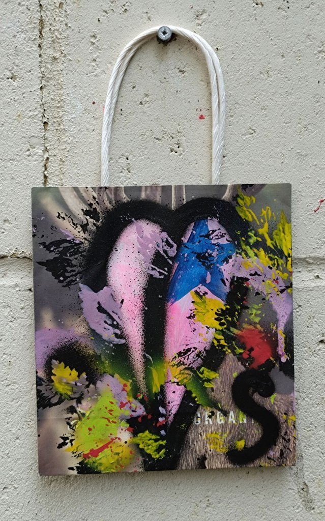 Bagged No.8 – Acrylic on recycled fashion bag, 28x45cm (July 2024)