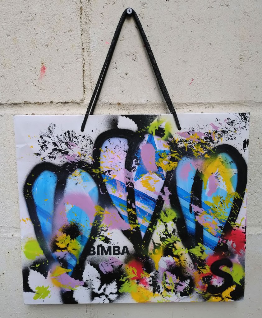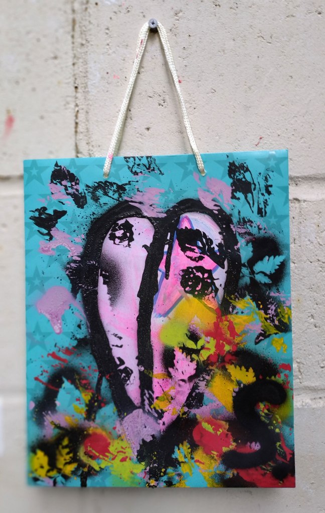 Bagged No.10 – Acrylic on recycled fashion bag, 25x17cm (July 2024)