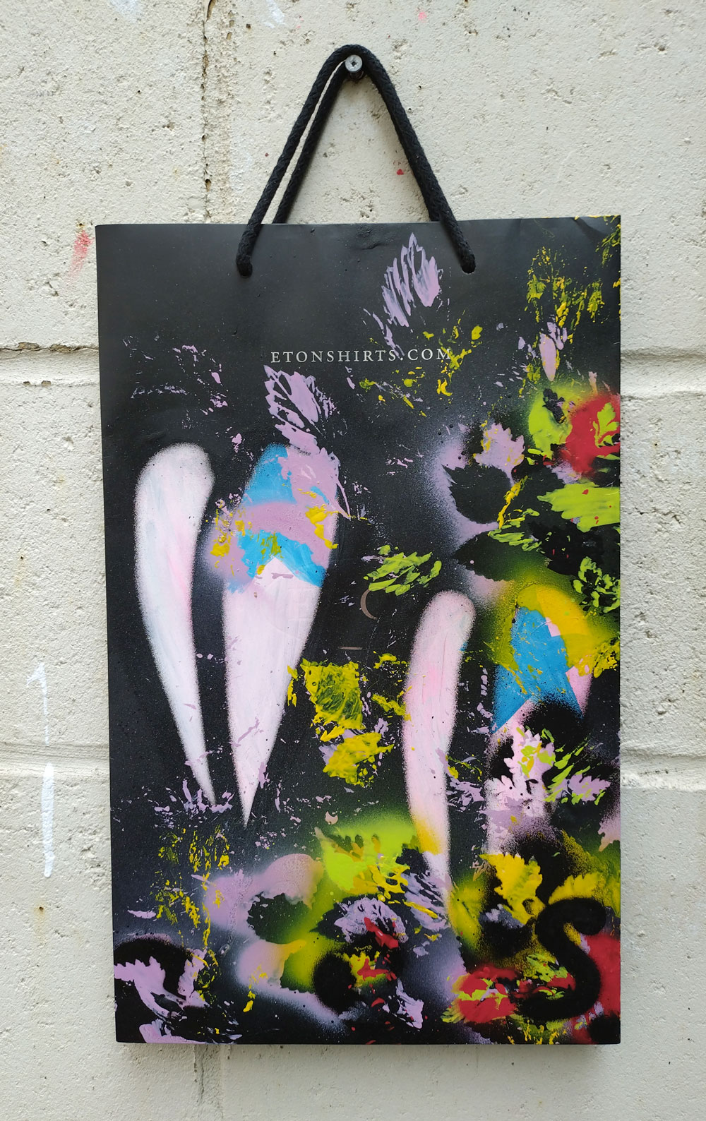 Bagged No.19 – Acrylic on recycled fashion bag, 31x41cm (July 2024)