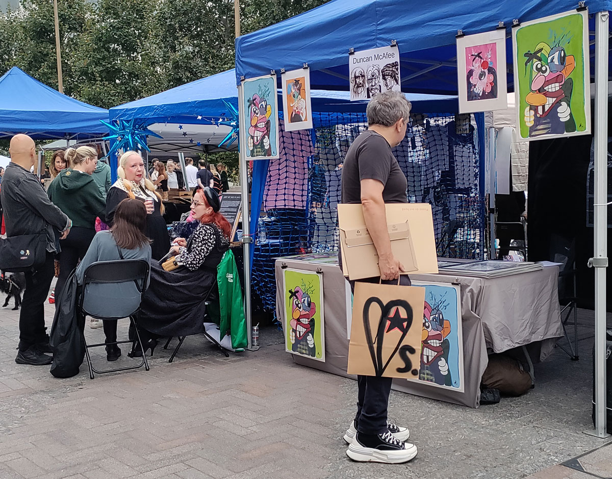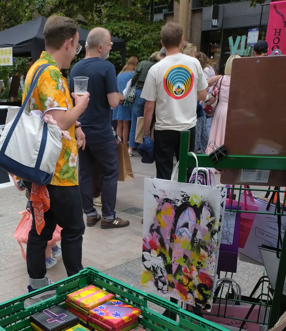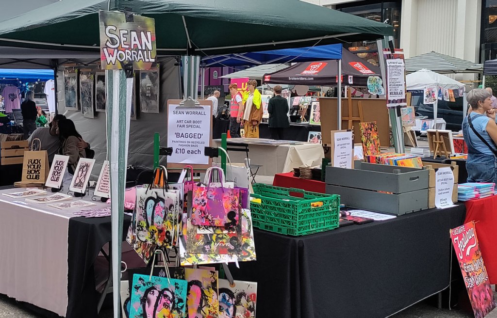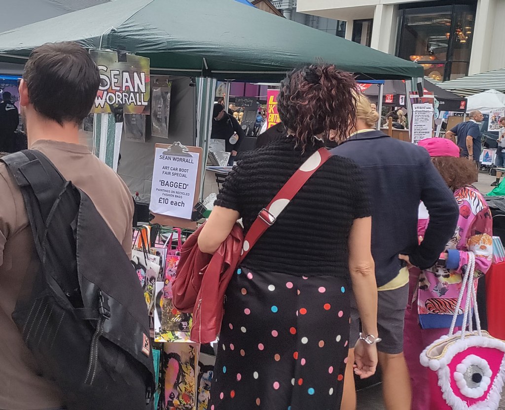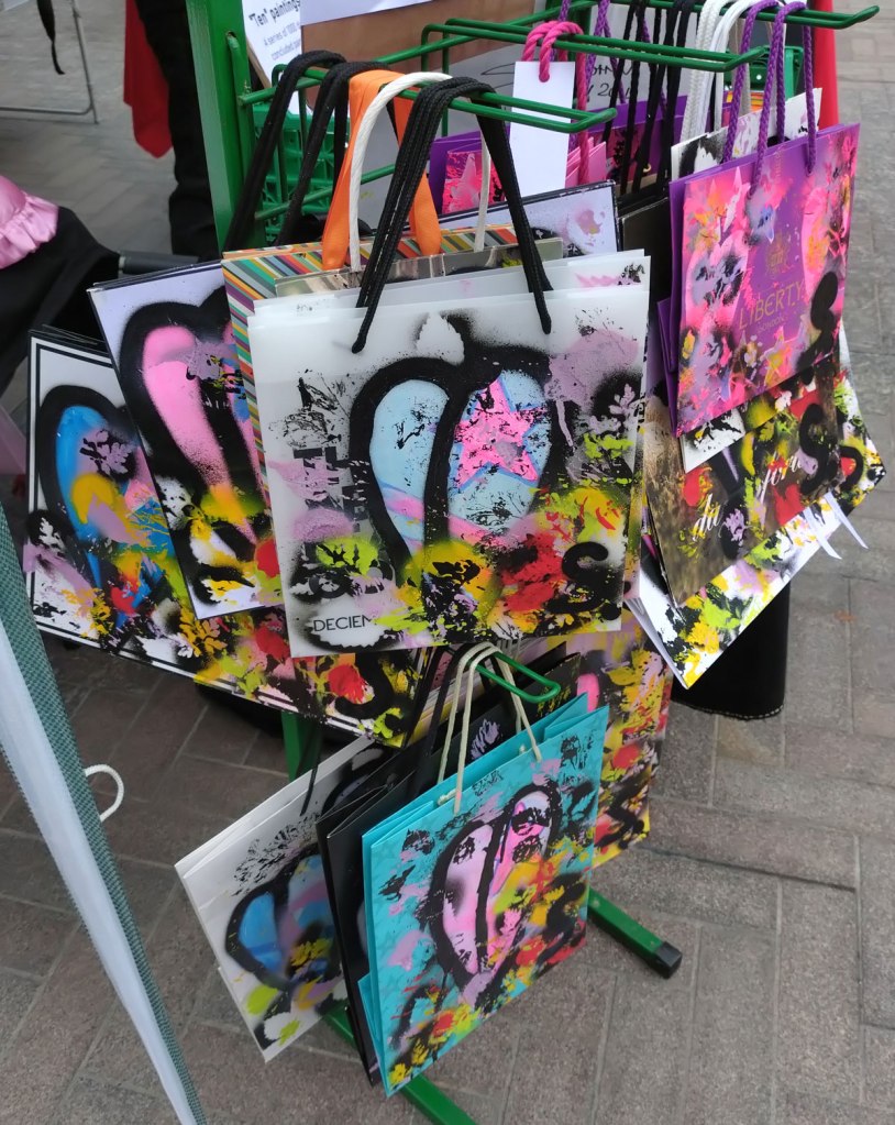 And so the Art Car Boot Fair happened last week over in King’s Cross, I took some bags I had painted on, then I painted a leaf on some bags so people had a bag to put their painted bags in, it was all about bags.