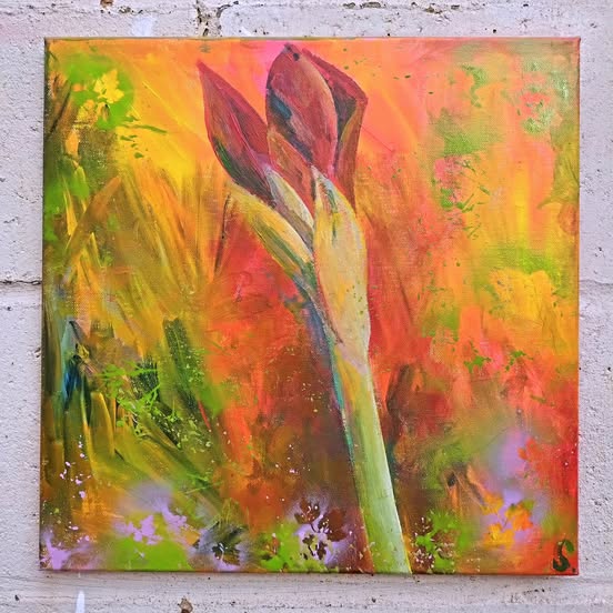 And as we were talking about Spring and new growth, “This Year’s Amaryllis (2025)” – Acrylic on canvas, 40x40x1cm, April 2025. A painting that was waiting to be finished here as the spring heatwave goes on…