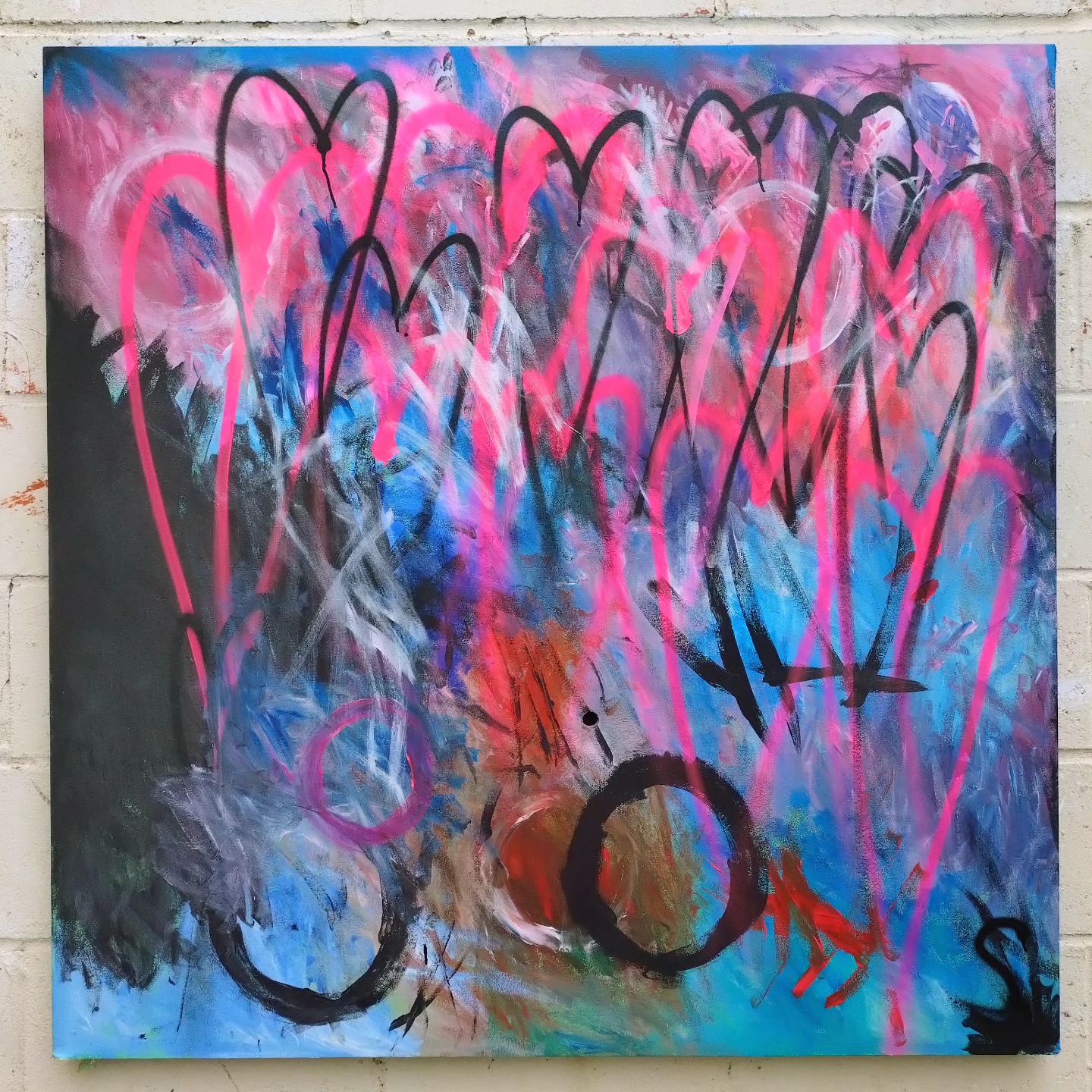 “Something For…” (2025/2026) – Acrylic on (found) wood, a ready made deep-edged canvas, 120x120x4cm – A painting now concluded, a painting with quite a history, a painting that I’ve been looking at here in the studio for a year or more now, a painting started the day after quite a serious eye operation (on my one working eye) while I really couldn’t see much and I must admit I wasa little worried I wouldn’t see much ever again. The painting has been touched now and again over the last year, marks made, conclusions…