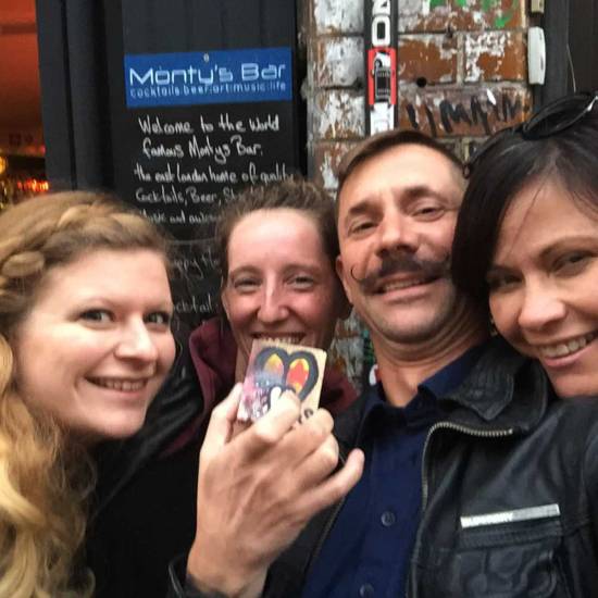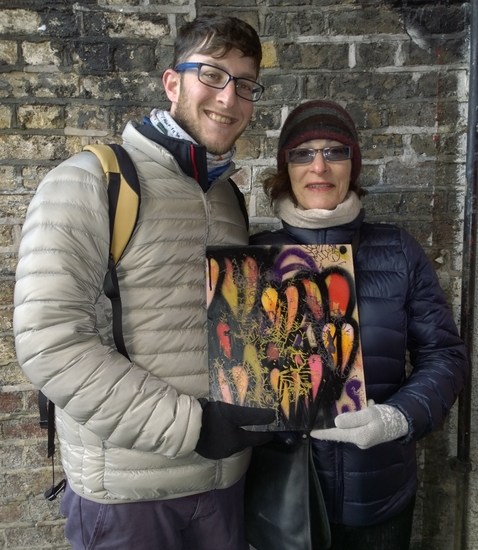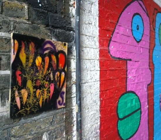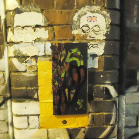 It wasn’t about a piece a day, it was just a year long piece of work in 365 parts, sometimes just one piece would be hung, sometimes a bag load of paintings, a dozen pieces taken out at the same time and hung around the streets of one area all at the same time. A good percentage of pieces left around East London for that is where we were based in 2015. Pieces left around Hackney, hung in Shoreditch, along Brick Lane, on walls Hoxton, Camden, Kentish Town pieces left in pubs, on shop walls, outside galleries, banks, pieces hung under railway bridges in West London, on walls around London Bridge, down by the river, in Soho, outside the old Marquee, or where the George Robey once was, hanging in the Leake Tunnel. Not always London though, pieces were left in Kingston, in Shrewsbury, outside railway stations in Birmingham, on the Margate seafront when we were there for 2015 Art Car Boot Fair, it was mostly London though, I didn’t get to stray far from my studio that year., the pieces did though, the pieces sometimes went on great adventures….