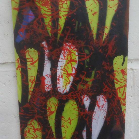 The interaction was important, the communication, the hashtag so that people could interact and be part of the piece of work as it evolved through 2015 was very important, seeing the photos of people was important pieces would be left, people would take photos and post them (instructions or requests to do so were on the back of the pieces. I wanted the people who chose to take the work to be part of the piece, I wanted to get some idea in terms of where the 365 parts of the piece had gone to, I wanted to see the people with the pieces, I wanted to see what would become of the things that had originally been thrown out and were heading for landfill before I picked them up and painted new layers of leaf growth on them. Engagement with art is always important, is there anything worse than art locked away behind the soulless closed door of an unfriendly gallery?