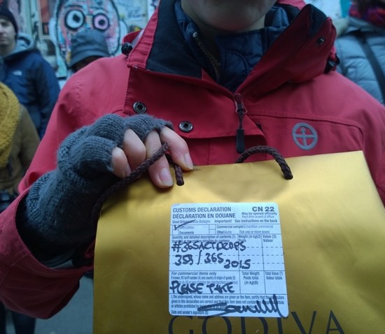 The idea was rather simple, it was rather spontaneous, a spontaneous thought on the first day of the new year. 2014 was spent exclaiming, the new year resolution was not to exclaim again, there had been dozens, hundreds, who knows how many hundreds of exclamation marks painted on canvas, on found things, on pieces of vinyl. on walls, hung in galleries, left on streets, there was one hundred exclamations painted on found pieces of material and left on the streets of the Hackney WickEd festival over one weekend in 2014, that was that year, 2015 would be a piece of work in 365 part, a paiece called #365ArtDrops, a piece that would last all year…
