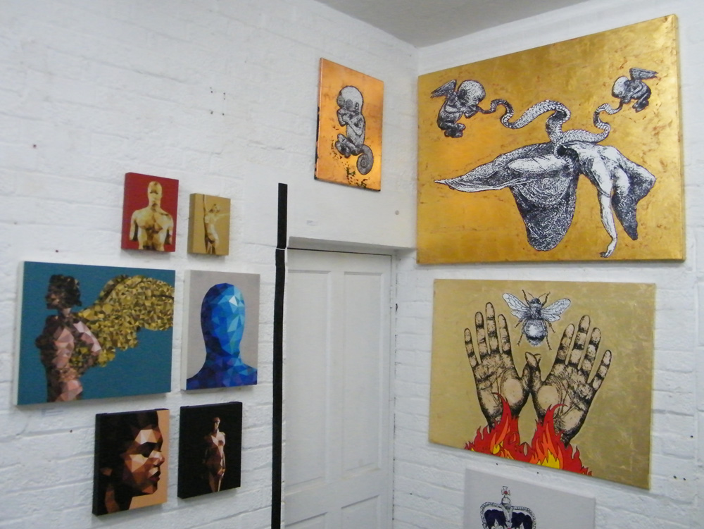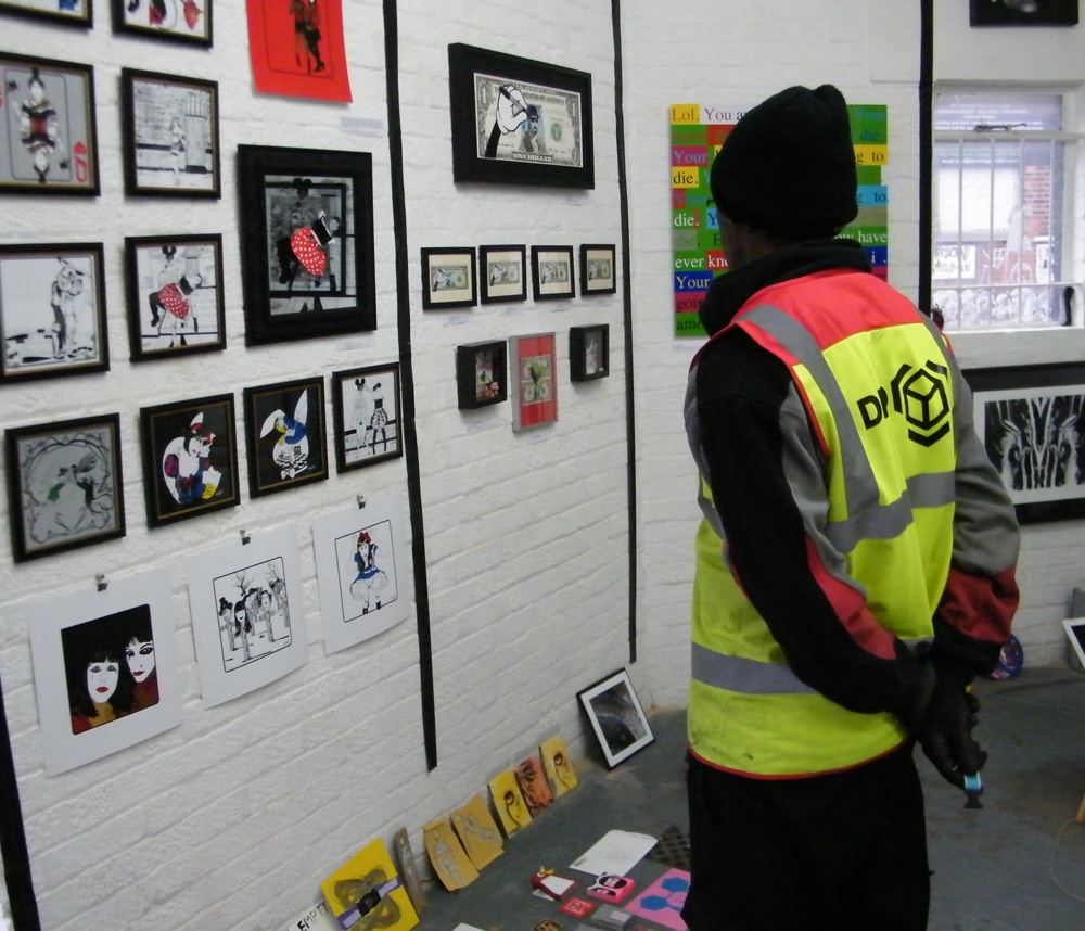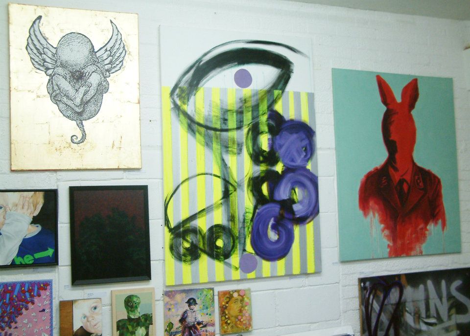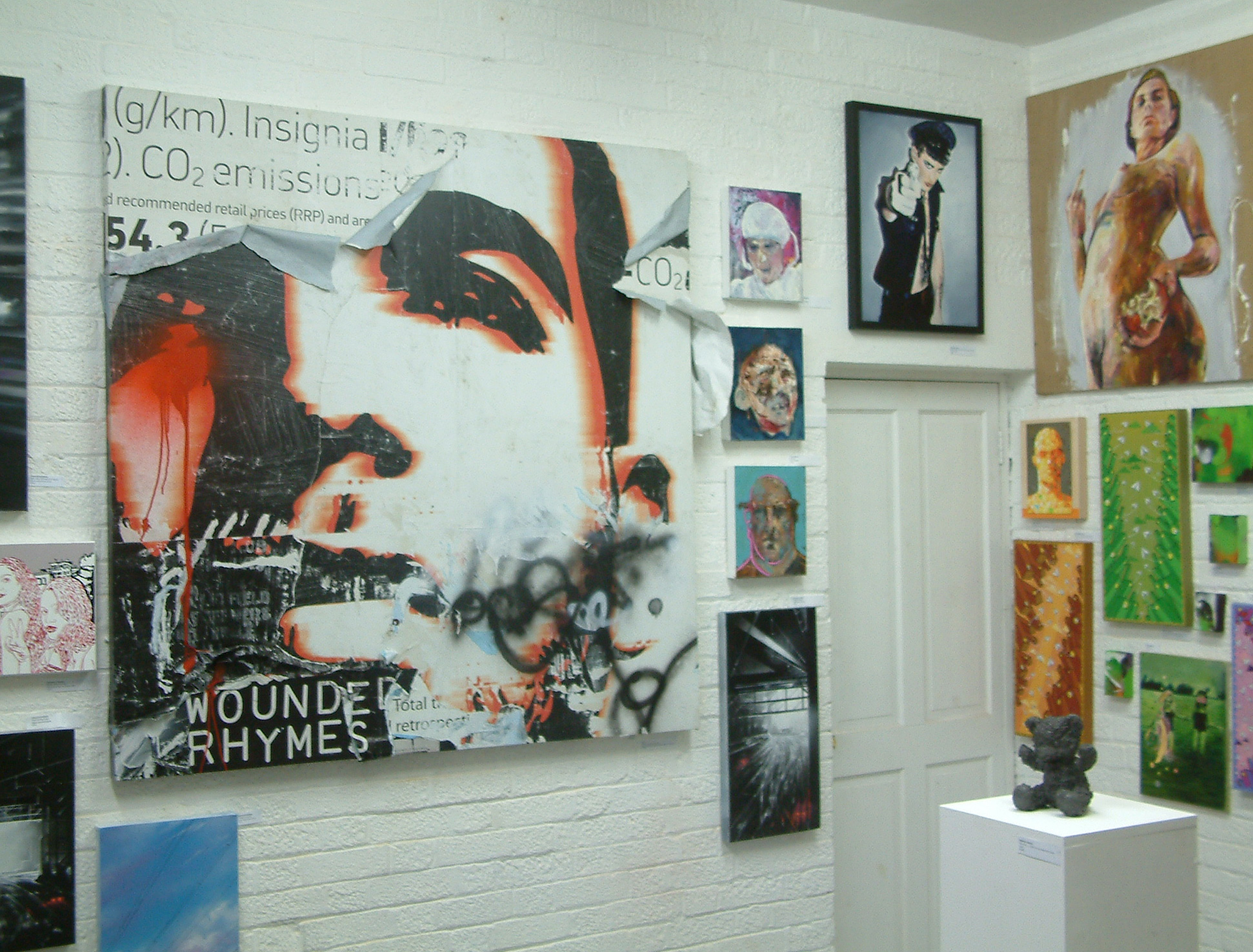 I do say somewhere on this website that I am an artist, and a (slightly reluctant) gallerist/curator, the making of art, painting mostly, does come first, I have been curating art shows for the last 10 or so years now though – exhibitions, events, gallery shows, group shows, things out there on the street, shows in condemned London warehouses, in offices, in formal white-walled galleries, in and old Edwardian drapery shops in car parks, under railway bridges, in street-art basements, a run of shows in an old East London greengrocer’s shop as well as a four year full on non-stop run of shows smack bang in the middle of East London’s now mythical Vyner Street. Shows often co-curated with fellow artist Emma Harvey’