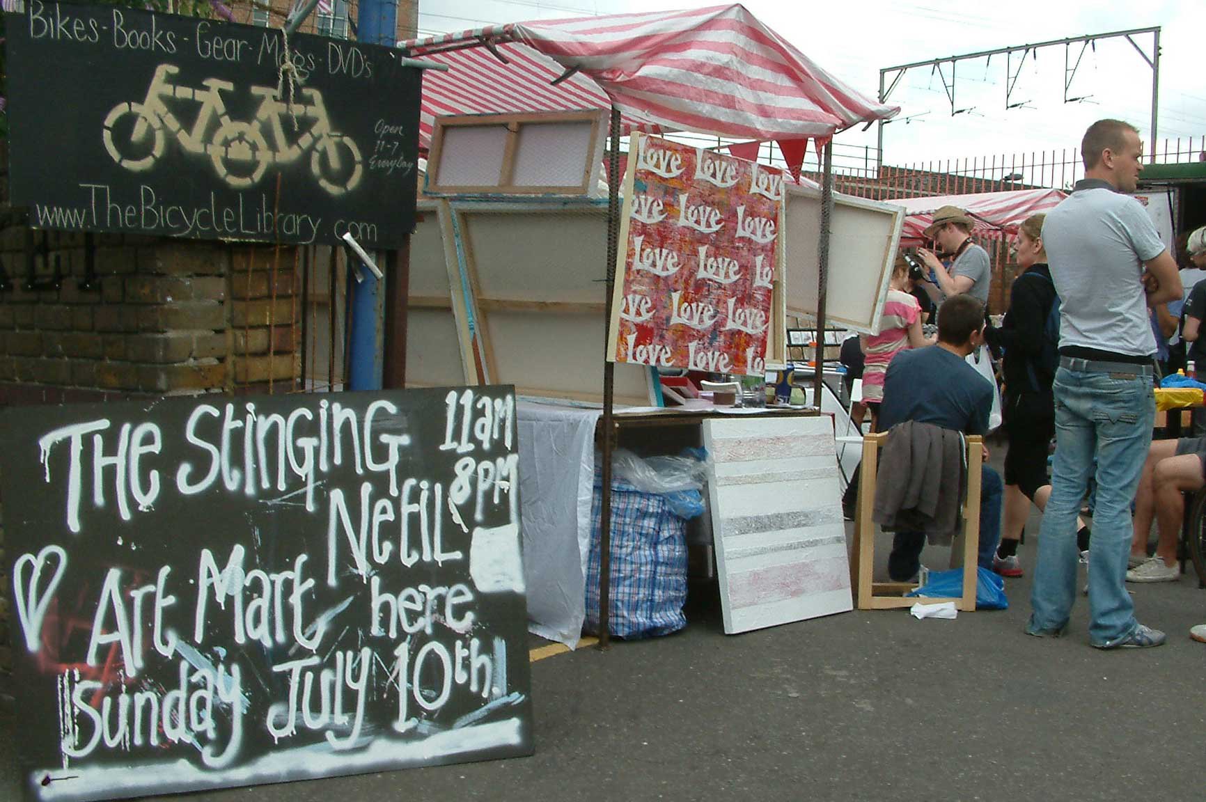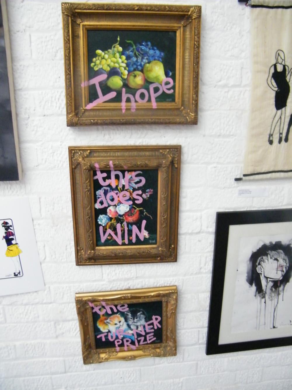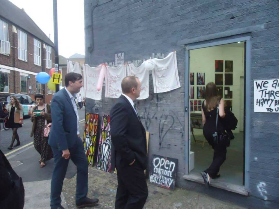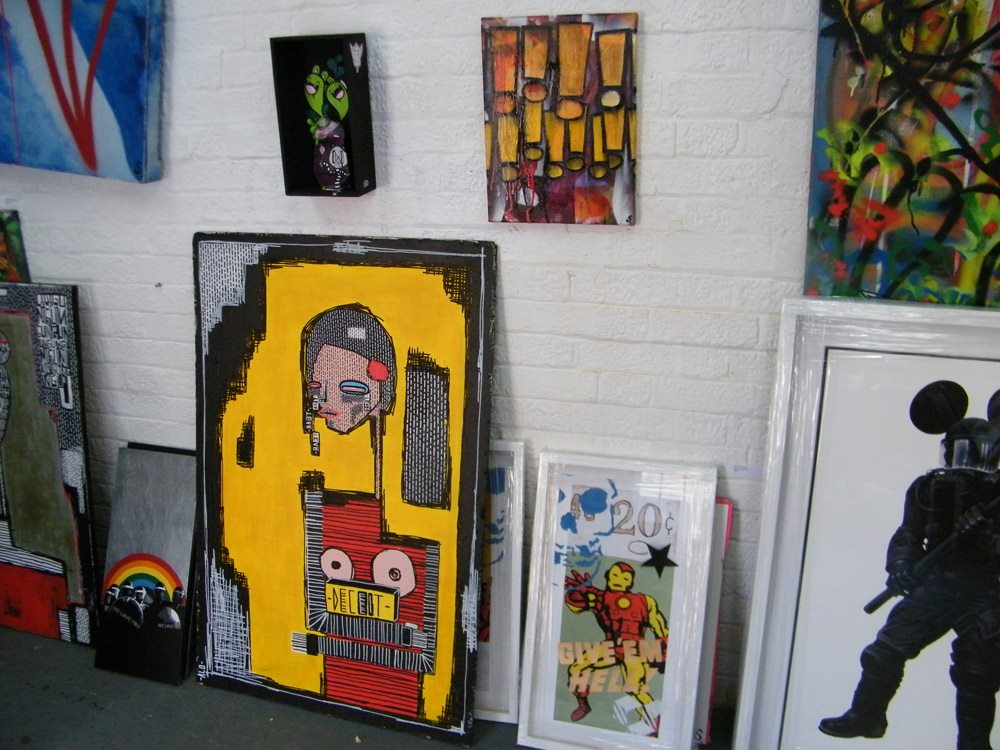 I do say somewhere on this website that I am an artist, and a (slightly reluctant) gallerist/curator, the making of art, painting mostly, does come first, I have been curating art shows for the last 10 or so years now though – exhibitions, events, gallery shows, group shows, things out there on the street, shows in condemned London warehouses, in offices, in formal white-walled galleries, in and old Edwardian drapery shops in car parks, under railway bridges, in street-art basements, a run of shows in an old East London greengrocer’s shop as well as a four year full on non-stop run of shows smack bang in the middle of East London’s now mythical Vyner Street. Shows often co-curated with fellow artist Emma Harvey’
