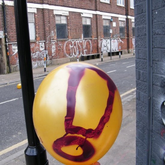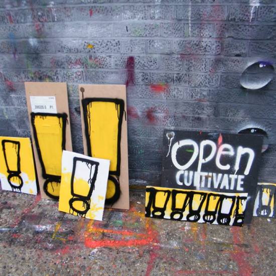 Exclaiming on an abandoned gallery sign, Vyner Street, August 2013
