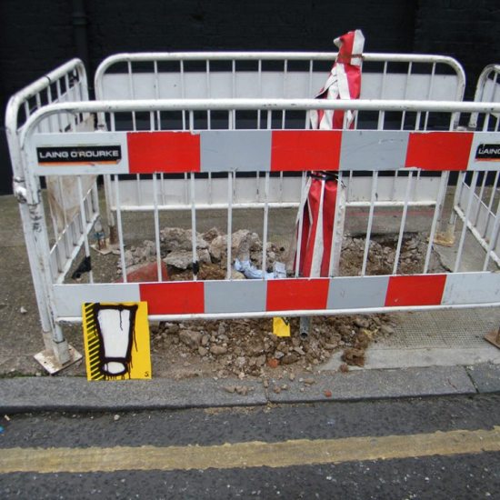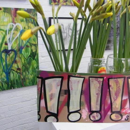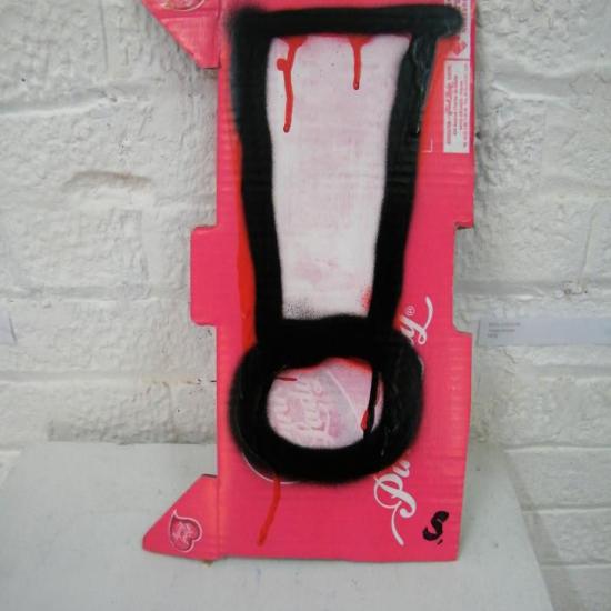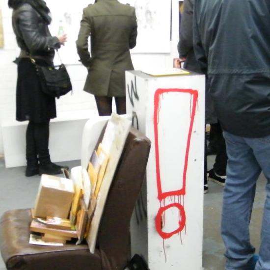 APRIL 2013 – Small cardboard exclamation, on the pile of £1 cardNoard pieces in the corner of the gallery now…