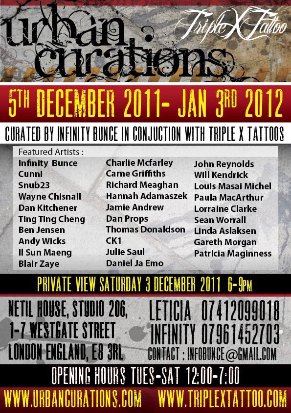 Dec 2011: URBAN CURATIONS at Triple X gallery, Netil House, Hackney, London E8.