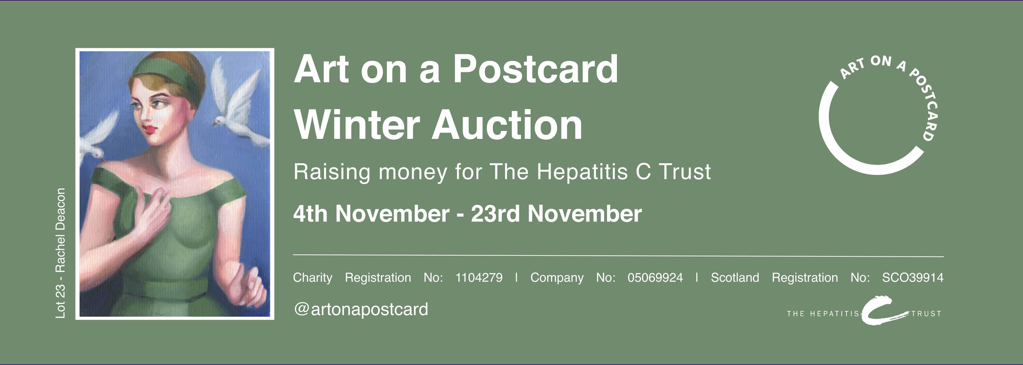 The Art on a Postcard Winter Auction. 4th – 23rd November – I have been invited to take part and I did just paint four Skyline paintings on postcards for the event. The Art on a Postcard (AOAP) Winter Auction is back for its seventh year celebrating a much bigger twenty years for The Hepatitis C Trust and capping a year of celebrations for this powerhouse of a charity. The on-line bidding takes place from 4th November until the 25th November 2021.