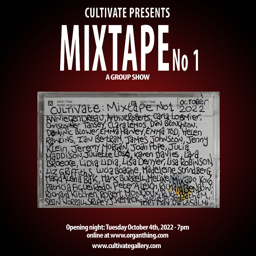 Cultivate presents Mixtape No.1 – October 4th 2022 – The second of a new series of Autumn on-line group shows curated by Cultivate founders Emma Harvey and Sean Worrall. The show is now open, view it here