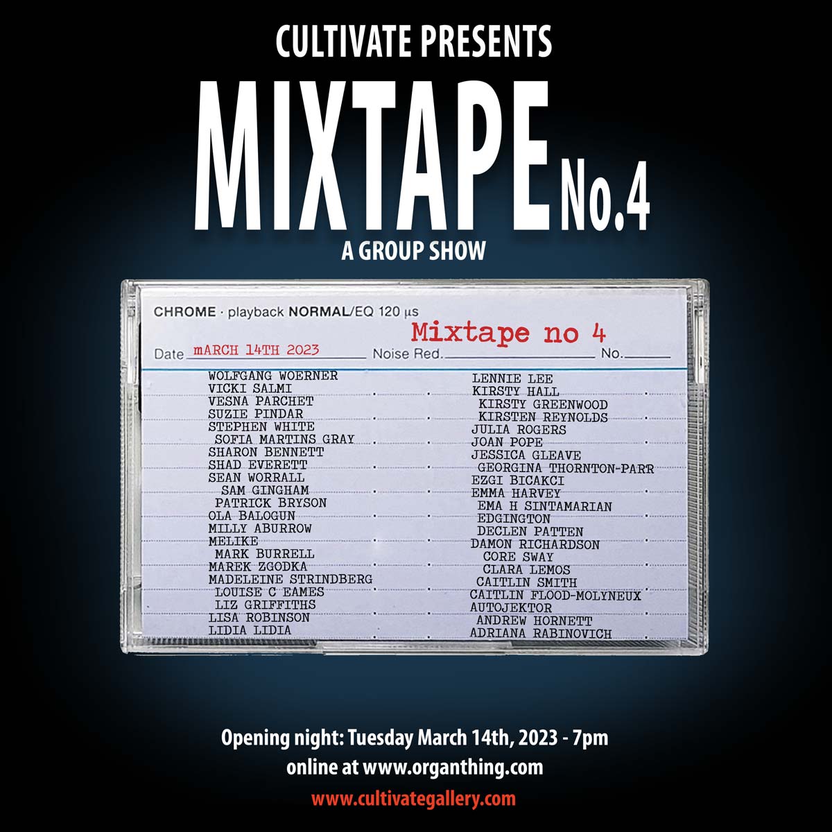 Mixtape No.9 – from Tuesday March 25th 2025 – The Nineth in the ongoing series of Mixtape online group shows, once again one of my co-curations (with fellow Cultivate founder Emma Harvey). An online art exhibtion featuring a whole bag of artists from all over the land and indeed the globe, explore Mixtape No.9 here, – As always, once a Cultivate on line show is open, there is no reason for it to close, find them all here.
