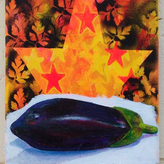 “An Aubergine From Cambridge Heath Road” (Nov 2022) – Acrylic on canvas, 20cm x 20cm x 1cm