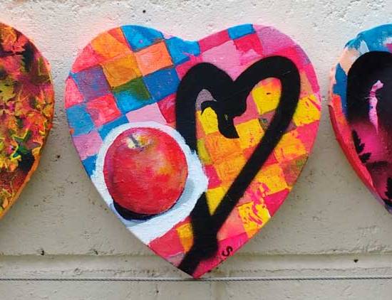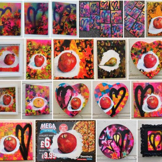 .”Third Time Lucky, An Apple From The Tree on Poyser Street” (February 2021) – Acrylic, brushwork, spray paint, gloss varnish on canvas, 50x40cm.