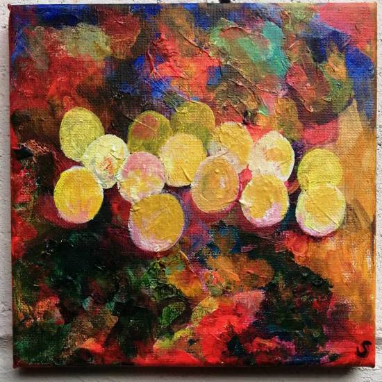 “Plums” (August 2021) – Acrylic on canvas 20cm x 20cm x 1cm