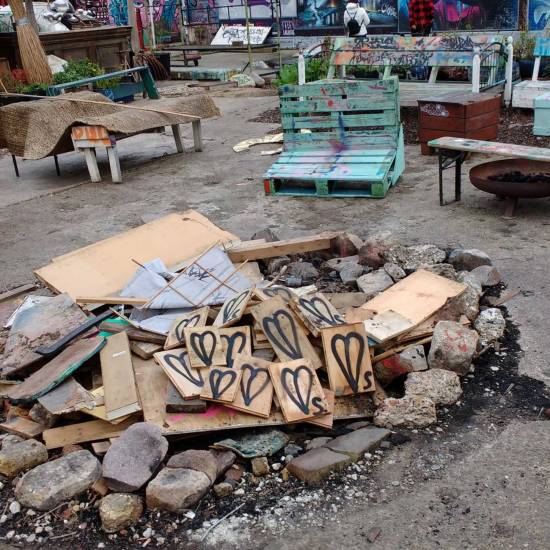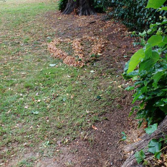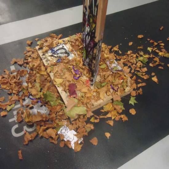 “Ready To Start A Fire” – the first work of 2019, an installation of leaves, a fire waiting to be lit, Nomadic Community Gardens, East London, January 1st 2019.